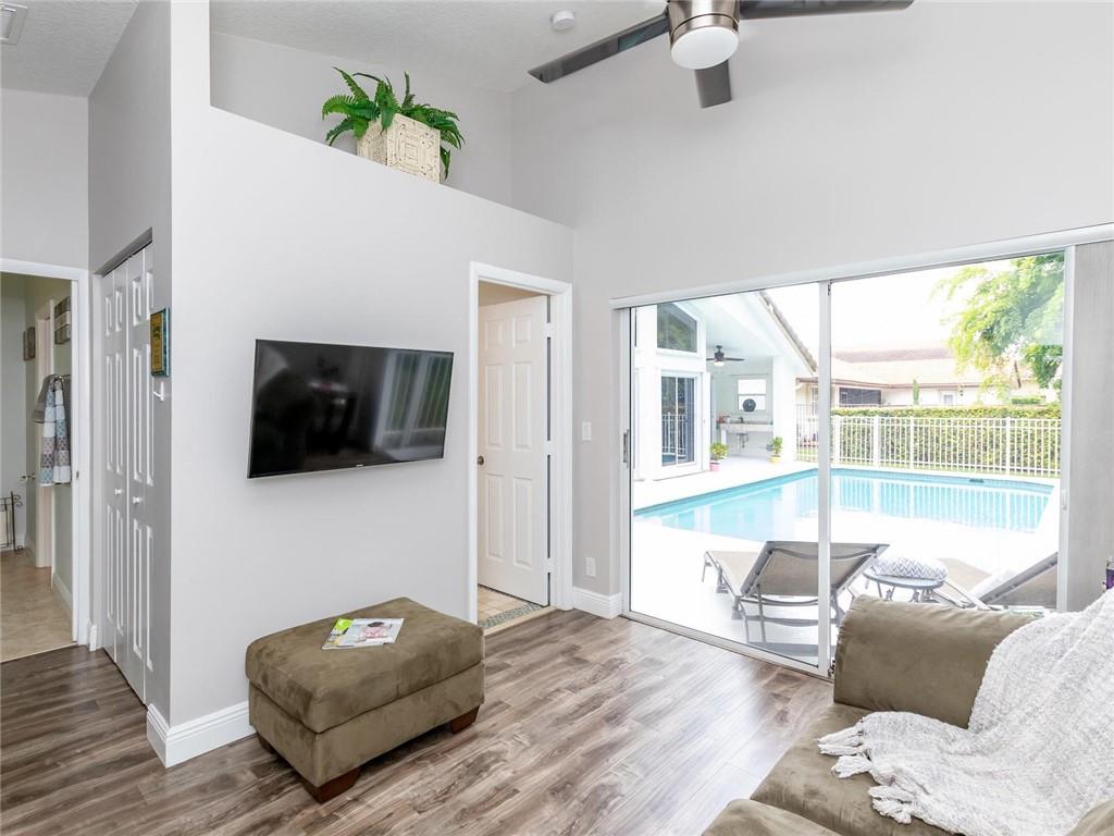 RARE FIND! STUNNING FULLY REMODELED CONTEMPORARY 5BD+DEN, 3.5BA, 3CG SINGLE STORY WITH FULLY FENCED POOL ON 1/4 ACRE PVT LUSH YARD! LIGHT, BRIGHT, SPACIOUS SPLIT FLR PLAN, HIGH CEILINGS. FRESHLY PAINTED INTERIOR IN TRENDY NEUTRALS! PVT CABANA-STYLE GUEST SUITE OFF MASTER (6TH RM!) IS PERFECT AS GYM, STUDY OR NURSERY. NEW KITCHEN W/42" GRAY CABS, QUARTZ COUNTERS, STAINLESS APPLIANCES. ALL REMODELED BATHRMS, WOOD LAM IN BEDRMS, 24" WHITE FLRS W/HIGH BASEBOARDS, GORGEOUS NEW MODERN CHANDELIERS & FANS, LED HI HATS, CUSTOM CLOSETS, ACCORDIONS, NEWER ROOF. RESURFACED POOL; POOL DECK W/COVERED BUFFET STATION, PERFECT FOR OUTDR ENTERTAINING. SMART HOME W/NEST THERMOSTATS, RING DOORBELL, SECURITY CAMERAS, FLAT TV WIRING. STEPS TO PEACEFUL WEST GLEN PARK & QUICK ACCESS TO SHOPS & SAWGRASS EXPRESSWY!