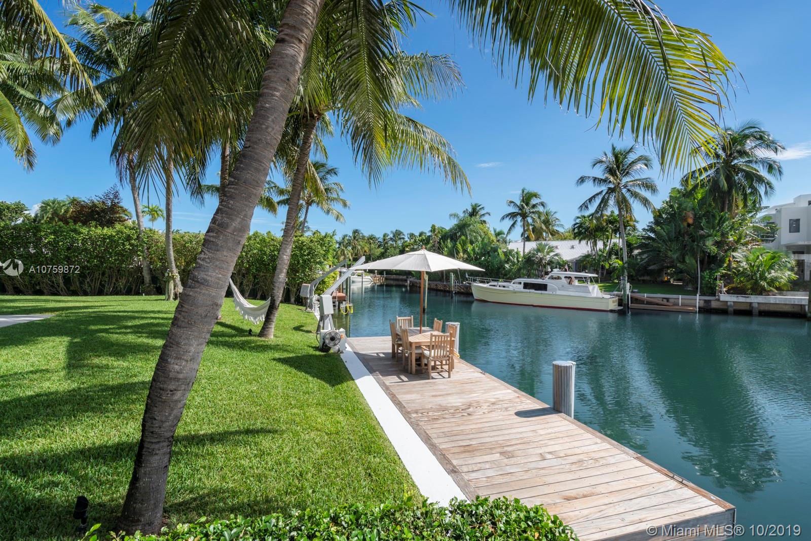 Stunning, magazine quality waterfront home on the exclusive & idyllic island of Key Biscayne. Enjoy water views from light-filled living spaces w/ soaring, vaulted wood-beamed ceilings, a striking white color palette & a modern vibe throughout. Updates include new: limestone flooring, spa-like baths, impact glass, interior & exterior Sonos sound system, new dock w/adjoining floating dock & new stone terrace & pool deck. European-style kitchen features black granite countertops, Viking appliances & breakfast area. Lush, tropical garden surrounds the resort-like outdoor space that offers an expansive covered terrace, pool & gazebo w/ spectacular sunset views. Protected, private dock w/davits & no bridges to the bay. Direct ocean access, 180’ turning basin at the head of the canal.