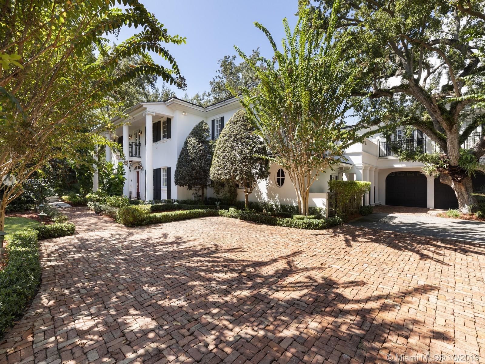 Poised to charm this Grande Dame two story colonial style architecture is everything the most discerning buyer could desire, and more. Renovated to perfection w/ the highest quality finishes: Rich custom mill work in the family room, library and kitchen, Viking gas stove, expansive outdoor entertainment areas, indoor & outdoor fireplaces, wood floors, sweeping staircase, library/den/kids study room. Enjoy decadent soirées & wine tastings in the exquisite 1,500 bottle wine cellar. Inviting tile pool, separate two story guest house, two car garage connected to the main house via a delightful covered breezeway through the garden. Completely walled, fenced and gated with the latest security system throughout. Mature oaks adorn this home in the most coveted residential area in Miami, So.Gables.