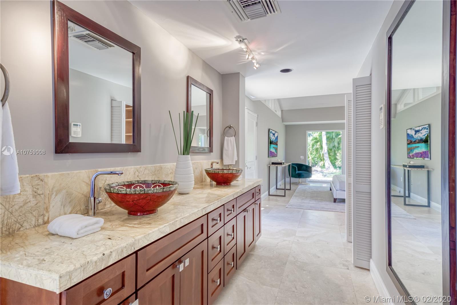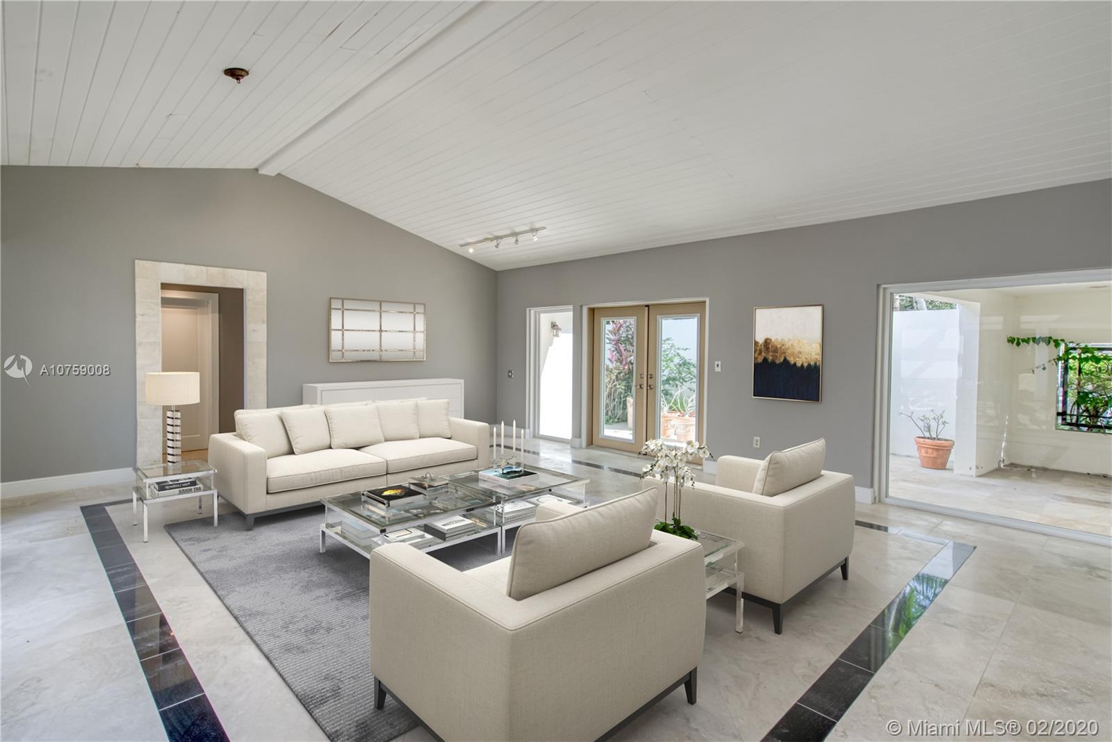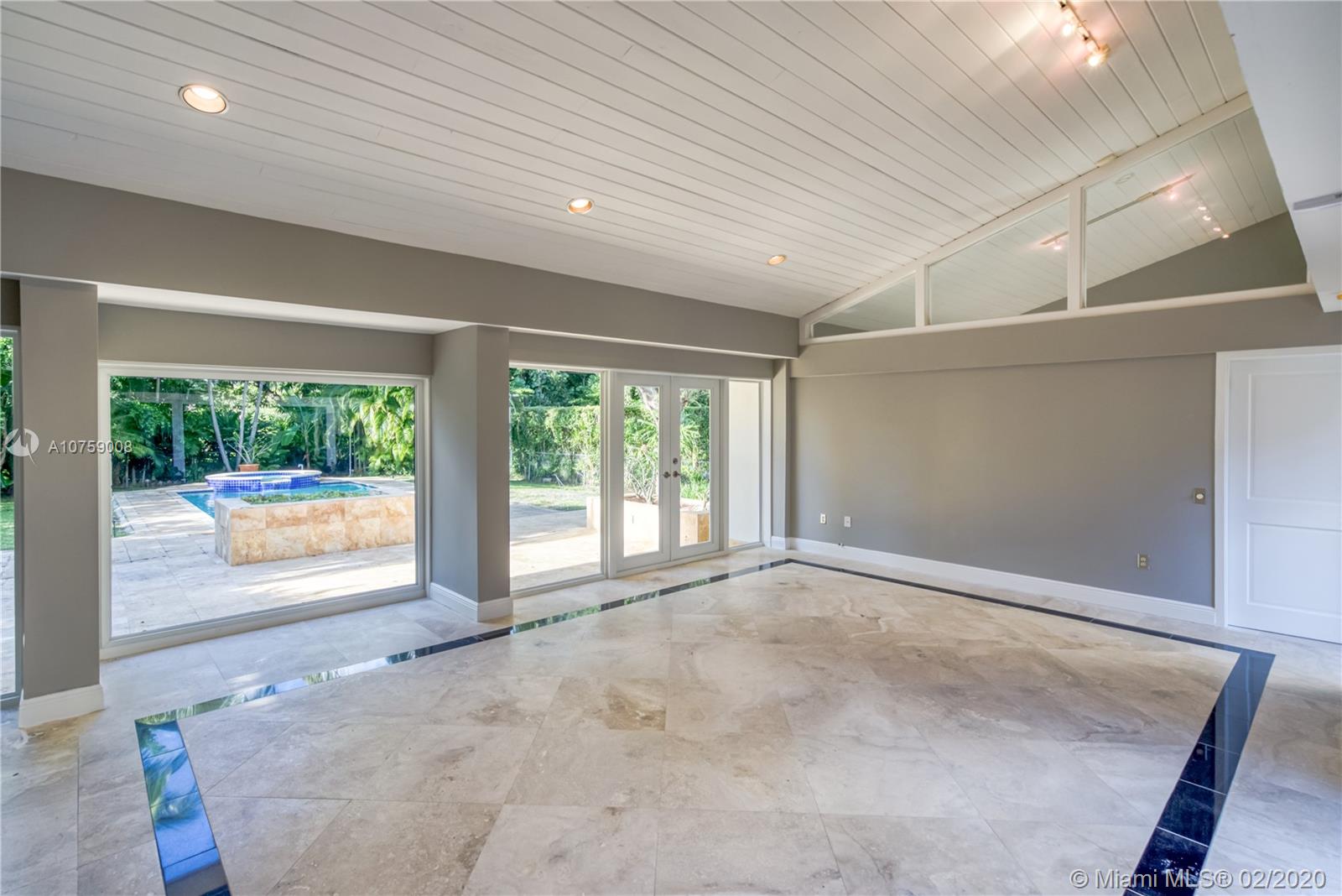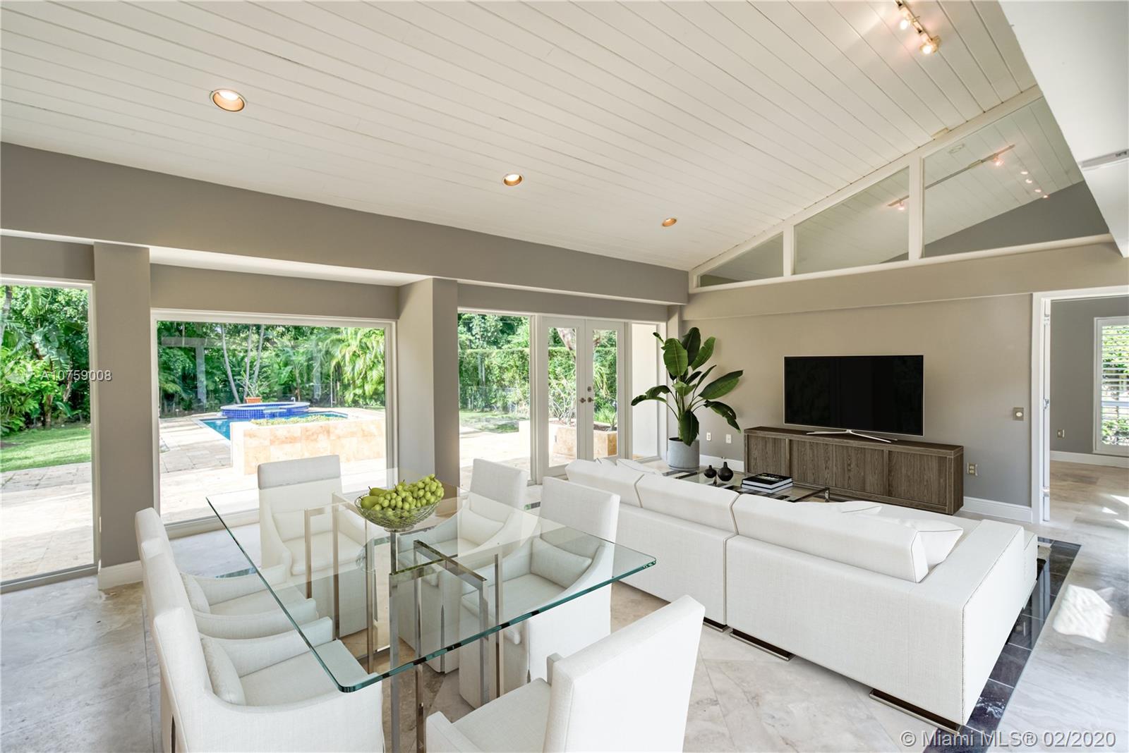 Gorgeous Coral Gables home with newly installed impact windows on an oversized 14,263 SF lot. This residence offers a spacious, light-filled floor plan with an open roof courtyard, oversized master bedroom with direct access to the pool area and three additional bedrooms with en-suite bathrooms. The kitchen offers a chef style gas range, wine cooler and extra storage custom made cabinetry. Huge backyard with oversized pool, which feels like a tropical oasis!!