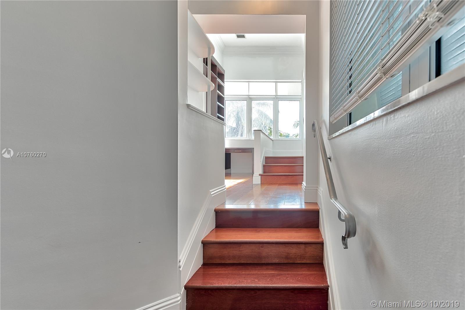 Gated entry welcomes you to this bright, airy, and open 4 bedroom, 5 bath waterfront home. Formal foyer, terrazzo floors and hardwood floors, fireplace, volume ceilings, and impact windows and doors are some of the features of this updated modernized home with deco inspired architecture. Wonderful floor plan highlighting an updated eat in kitchen with top of the line appliances, 3 bedrooms upstairs and an expanded master suite with 2 walk in closets and new master bath. Oversized lot with outside patio, beautiful pool and spa, dock and boat lift. Come and enjoy, easy to show.