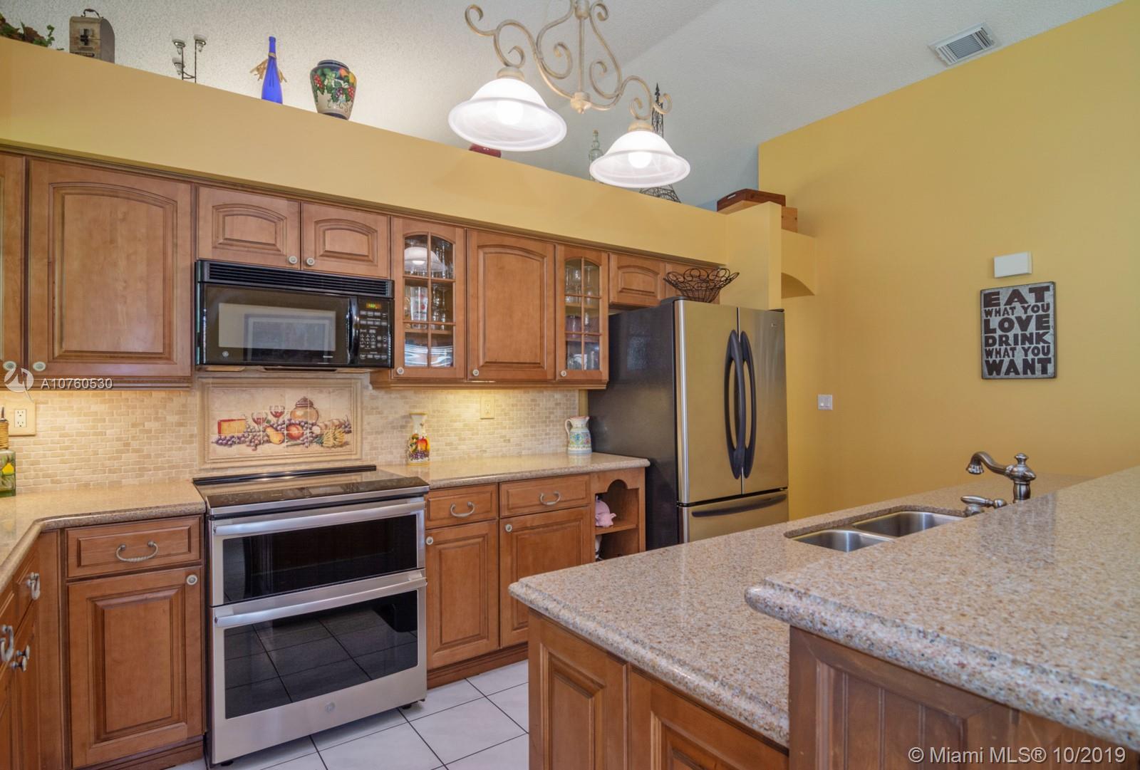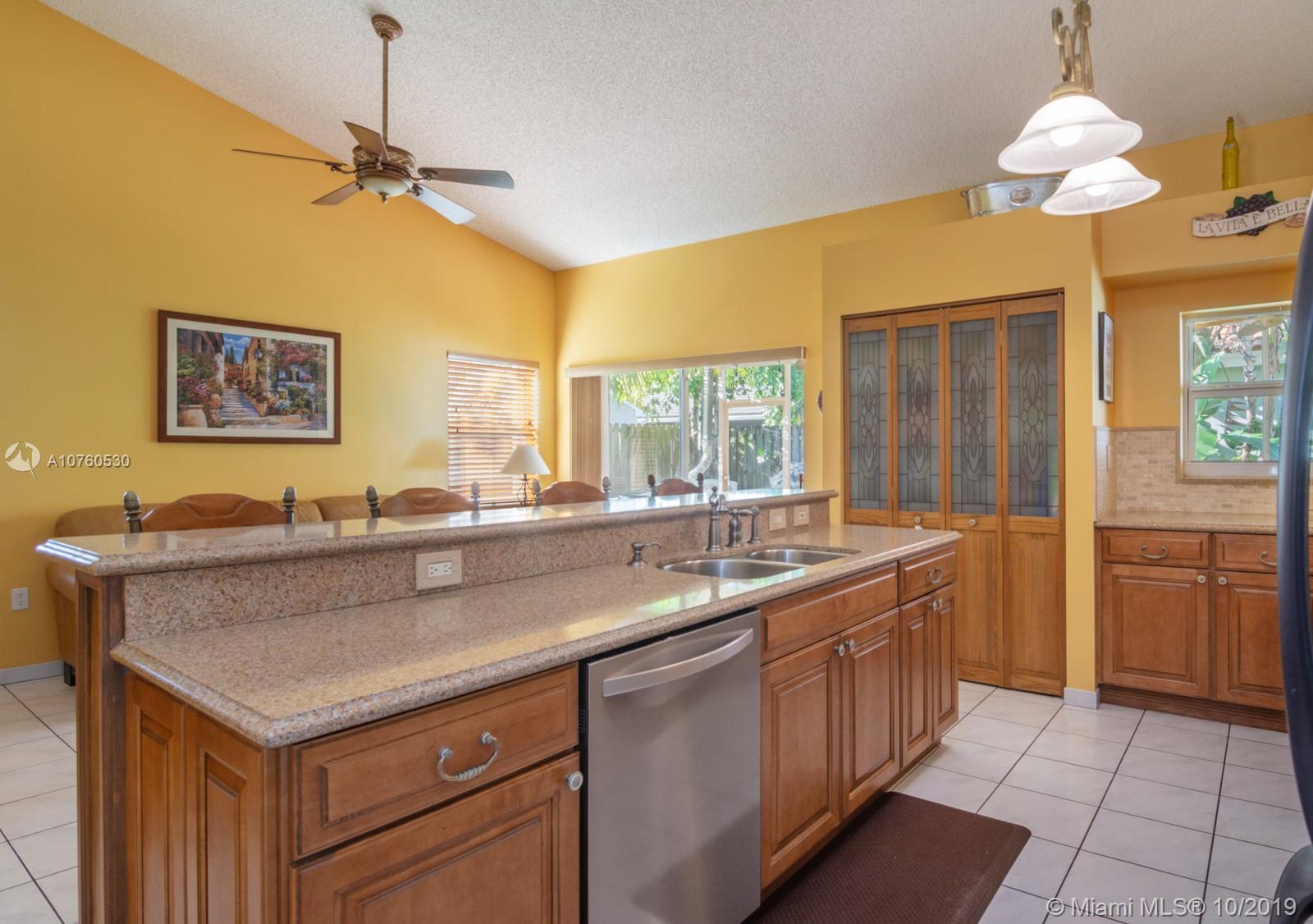 Tranquil, Immaculate and Spacious 3 bedroom 2 bath home ideally located in the Residences of Sawgrass Mills. This meticulously, well-maintained home has been cared for by the original owners. Upgraded kitchen and bathrooms, completely redone with semi-custom Thomasville solid wood cabinets, marble backsplash and quartz counters in kitchen & master. Granite in both baths with marble inlays. Stainless appliances include new GE Profile double oven & newer dishwasher. The private, covered & tiled patio is newly rescreened and just perfect for entertaining and relaxing. New 2019 Trane 17 SEER variable speed AC, newer 2011 roof & hot water heater, and accordion hurricane shutters. Easy access to shopping and highways. Walking distance to top-rated school well suited for a family. A MUST SEE!