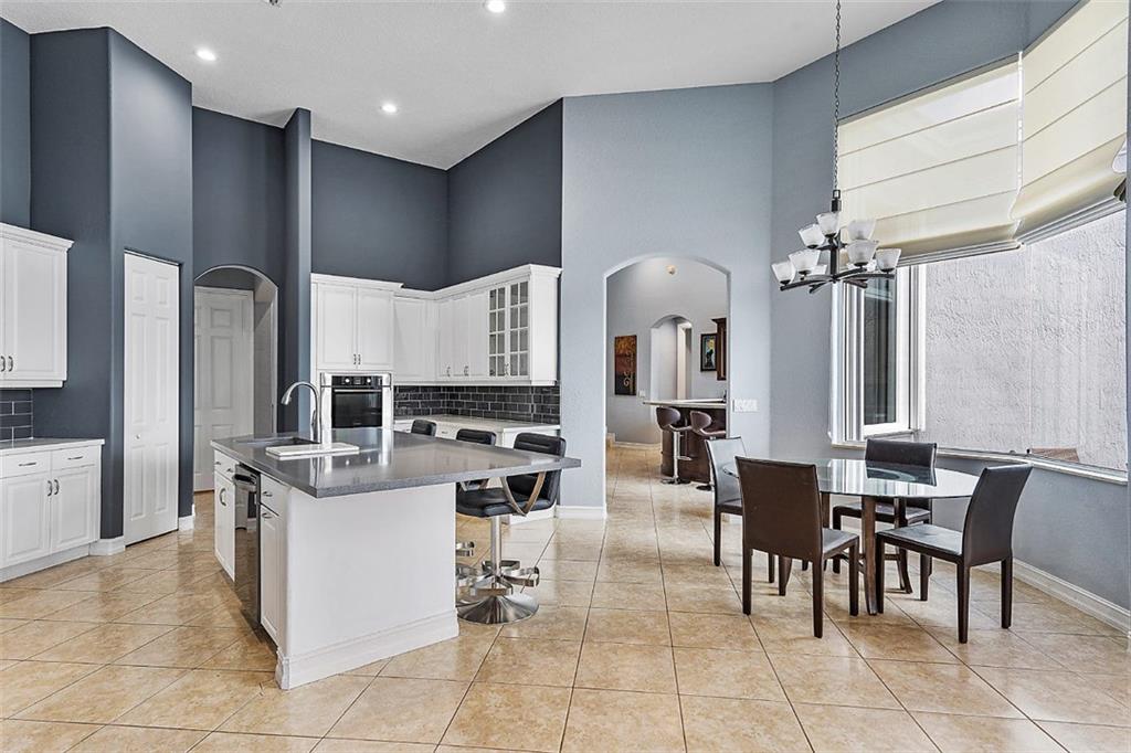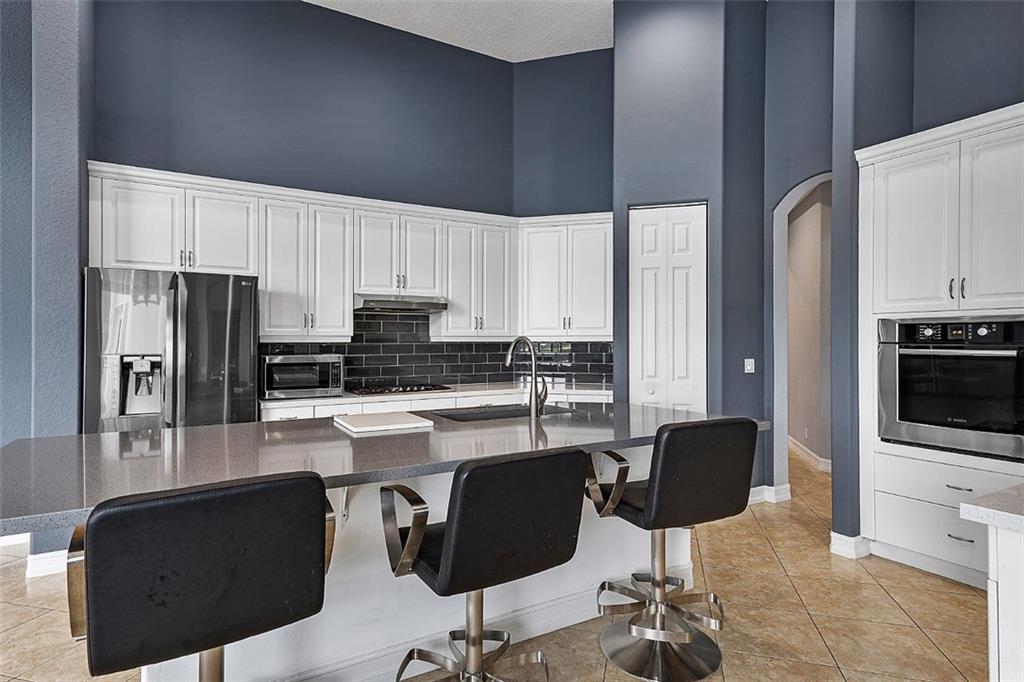 This stunning home with a 2019 ROOF is situated on a large, point waterfront lot. Enjoy breathtaking long & wide views of the waterways (see pics) & then the golf course beyond. Crisp white kitchen w/quartz counters, granite sink basin, newer SS appliances including a gas 5 burner stove! This Fabulous home w/an open & triple split design offers: 5 big & true bedrooms, heated pool, large patio, huge yard for the children to play, porcelain tile in main areas, wood like tile in bedrooms, custom built bar, 2 newer A/Cs, tankless gas water heater, freshly painted interior & exterior, new pool pump, gas hookups for an outdoor kitchen, accordion shutters, large laundry room, a new WiFi 2-car garage door opener & World Class Amenities! Enjoy Resort Style Living in the VISTAS of Heron Bay