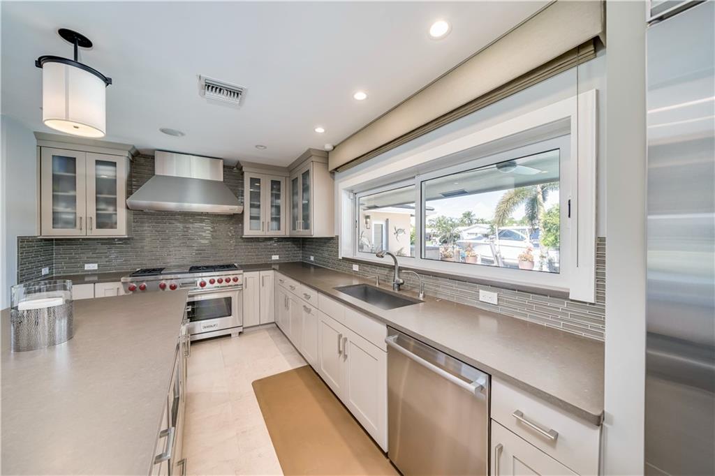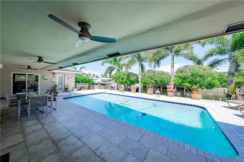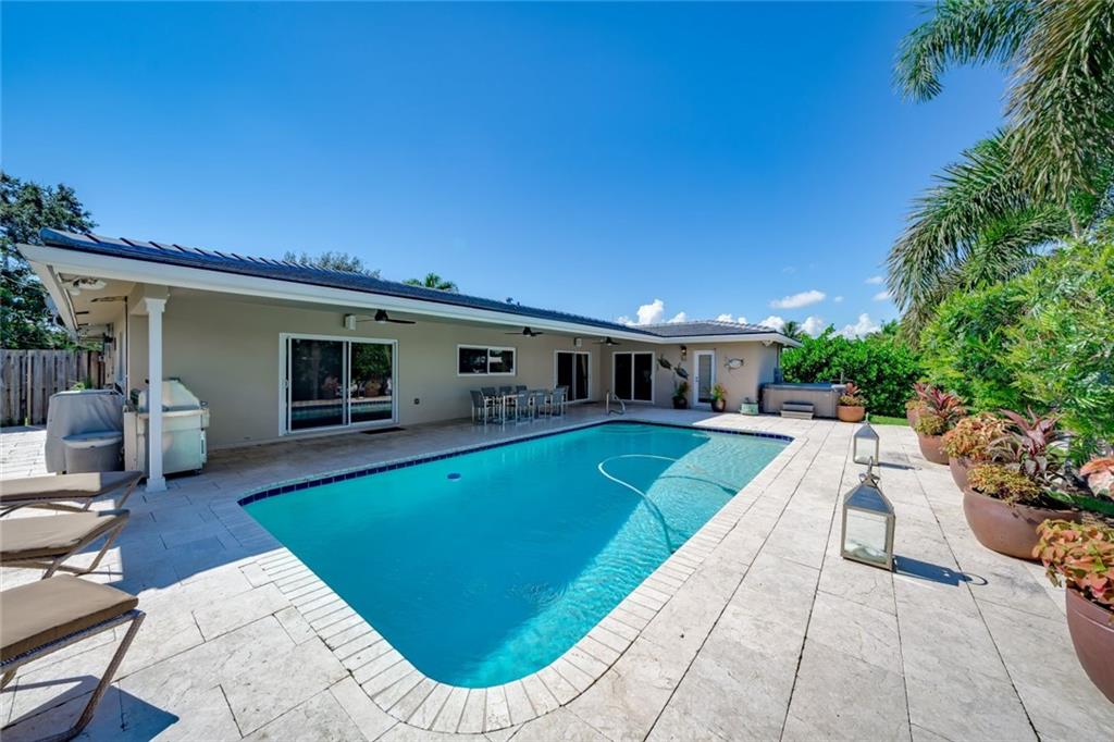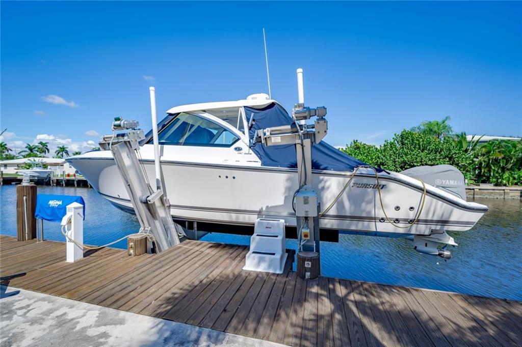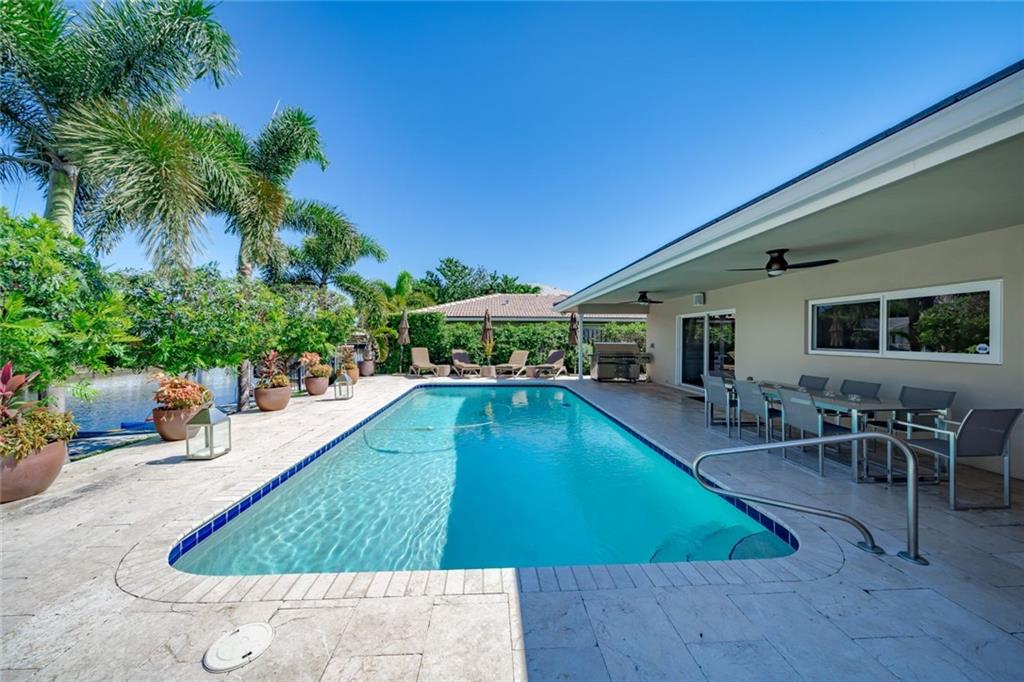 Desirable Lake Estates designer updated ocean access home complete with Chef's Kitchen, open floor plan, high end finishes and boat lift. Perfect for people that love to entertain and enjoy the waterfront lifestyle. Fitted with the top of the line kitchen appliances like two Sub-Zero Refrigerators, Gas 6 burner Wolf stove, Bosch dishwasher, two glass front wine refrigerators and an open floor plan between dining room and living room for entertaining. With the open floor plan flowing perfectly out to the oversized travertine pool deck area, you'll be able to throw amazing parties or more intimate dinners for a few friends. You'll feel secure with all impact windows, doors, Generac generator and a brand new roof 3/2019. Square footage is estimated, Buyers to Verify Square footage.