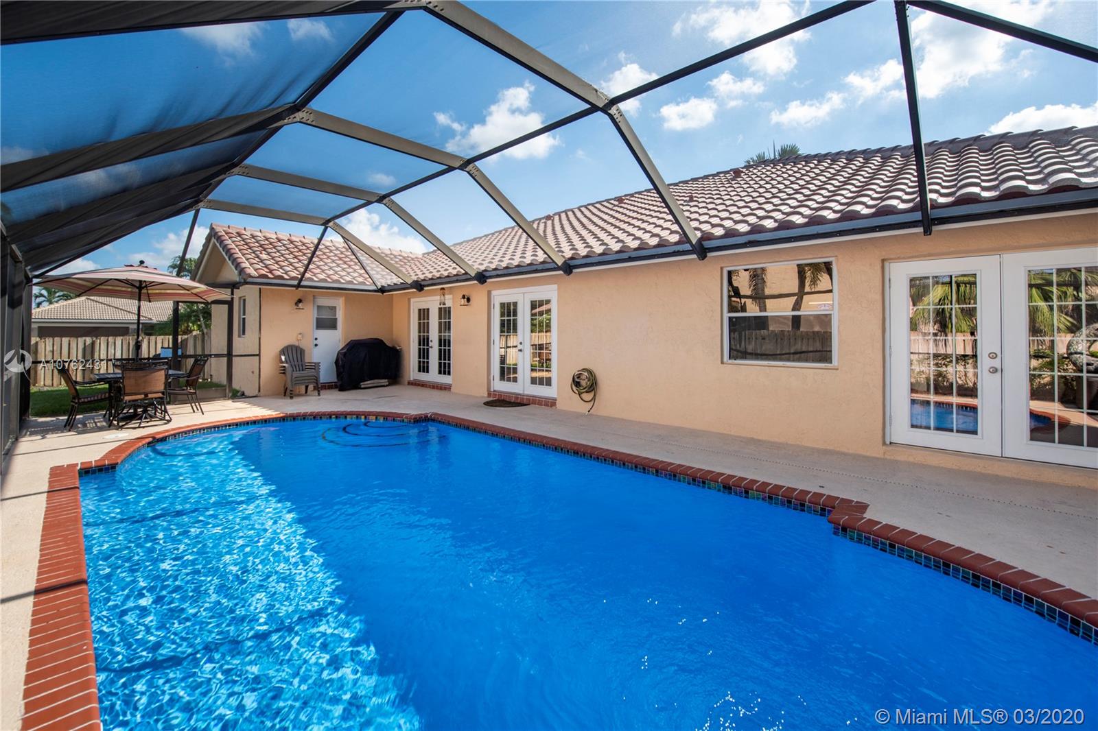 ***OWNER WILL ENTERTAIN SHOWINGS DURING CORONAVIRUS SHUTDOWN* Beautiful 4 bedroom 3 baths remodeled kitchen and bathrooms! Spacious Corner ***pool home* Unique floor model with a triple split - master on one side of the house, 2 bedroom and bath on other side and junior suite with its own bathroom on the other side! Tiled floors throughout, french doors leading to beautiful screened patio & crown moldings! ***Newer roof*** inside and out of pool was just resurfaced***A/C 5 years old******new pump system for pool***Inside laundry room! Community features a pool, tennis courts, pickle ball courts and access to the Ridge! Top school district! Centrally located with easy access to major highways, Nova Southeastern University, Turnpike, I-595, Turnpike, I95 and I75!