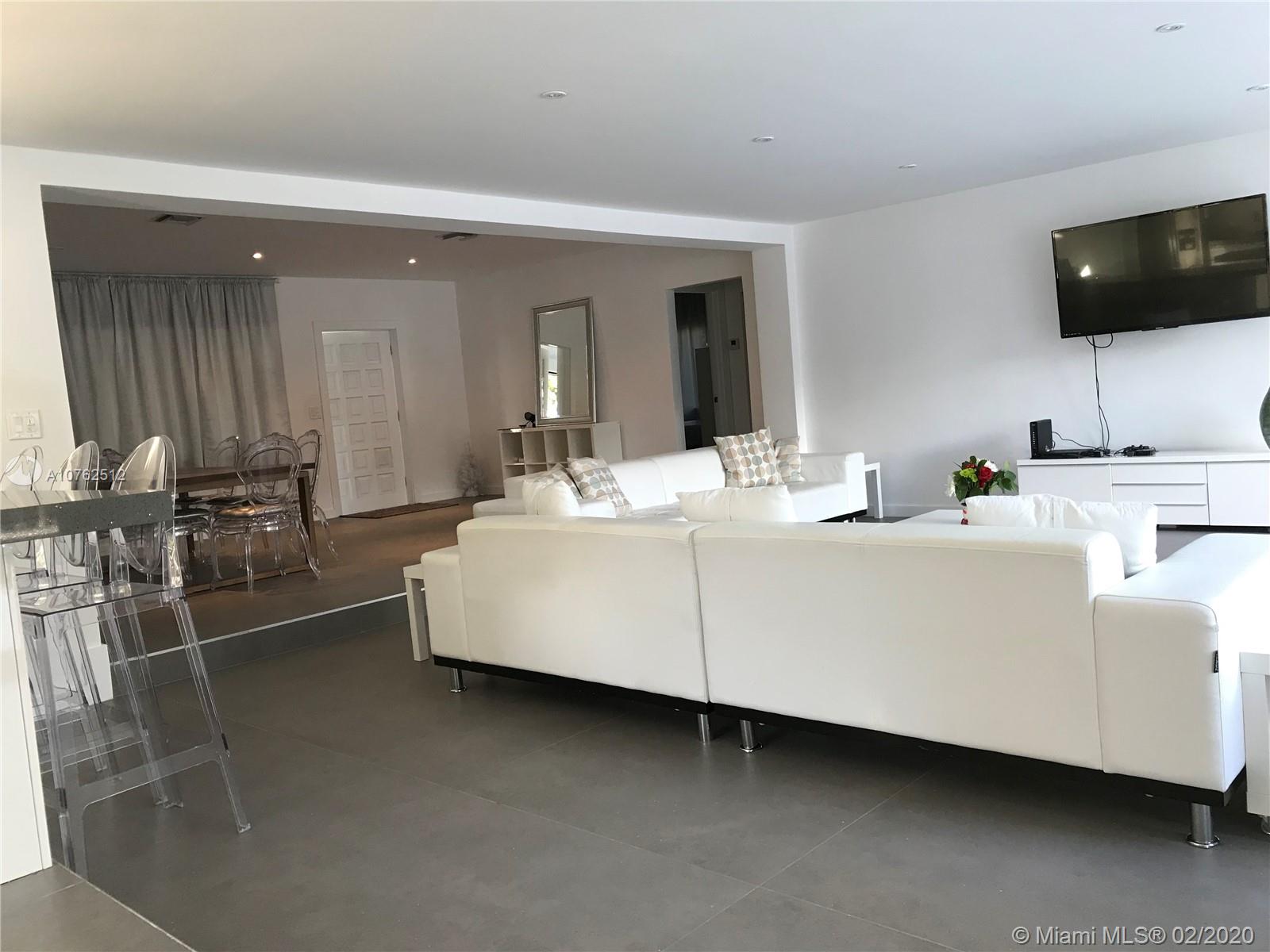 Beautifully renovated waterfront home, its spacious open interior is naturally lit.The modern house contains a living area of 2,492Sq. Ft European style kitchen with cooking Island over looking the great room and patio area.High impact windows and doors, 2 car garage with electronic doors.The pool is 15by30 feet ,surrounded by spacious sitting/lounging area for great entertainment. The property sits on a 11,250 SF land with a 75 feet deep canal water frontage with floating dock.The house was completely renovated in 2018-2019.The property is approved and licensed for short term use.