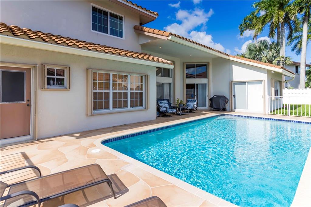 Absolutely stunning remodeled home in the community of Carriage Pointe Estates. Located on a Cul-de-Sac. Features 4 bed 3 baths with spacious living areas, high ceilings & lots of glass doors leading to the patio/ pool deck. Home has a convenient floorplan allowing the master bedroom on the first floor with 2 baths including a cabana-bath & a guest room downstairs. Upstairs with two guest suites each with walk-in closets & Jack & Jill setup with their own bathroom sinks. Recent Updates include Newer Kitchen with SS appliances, granite countertops, remodeled baths. Newer Roof in 2017. 2 Brand new AC units, New WH 2019, Impact windows, accordion shutters on sliders & smart home automated switches throughout. Low Association fee approx. $138/M. Incl. security & 24 hours man-gated entry.
