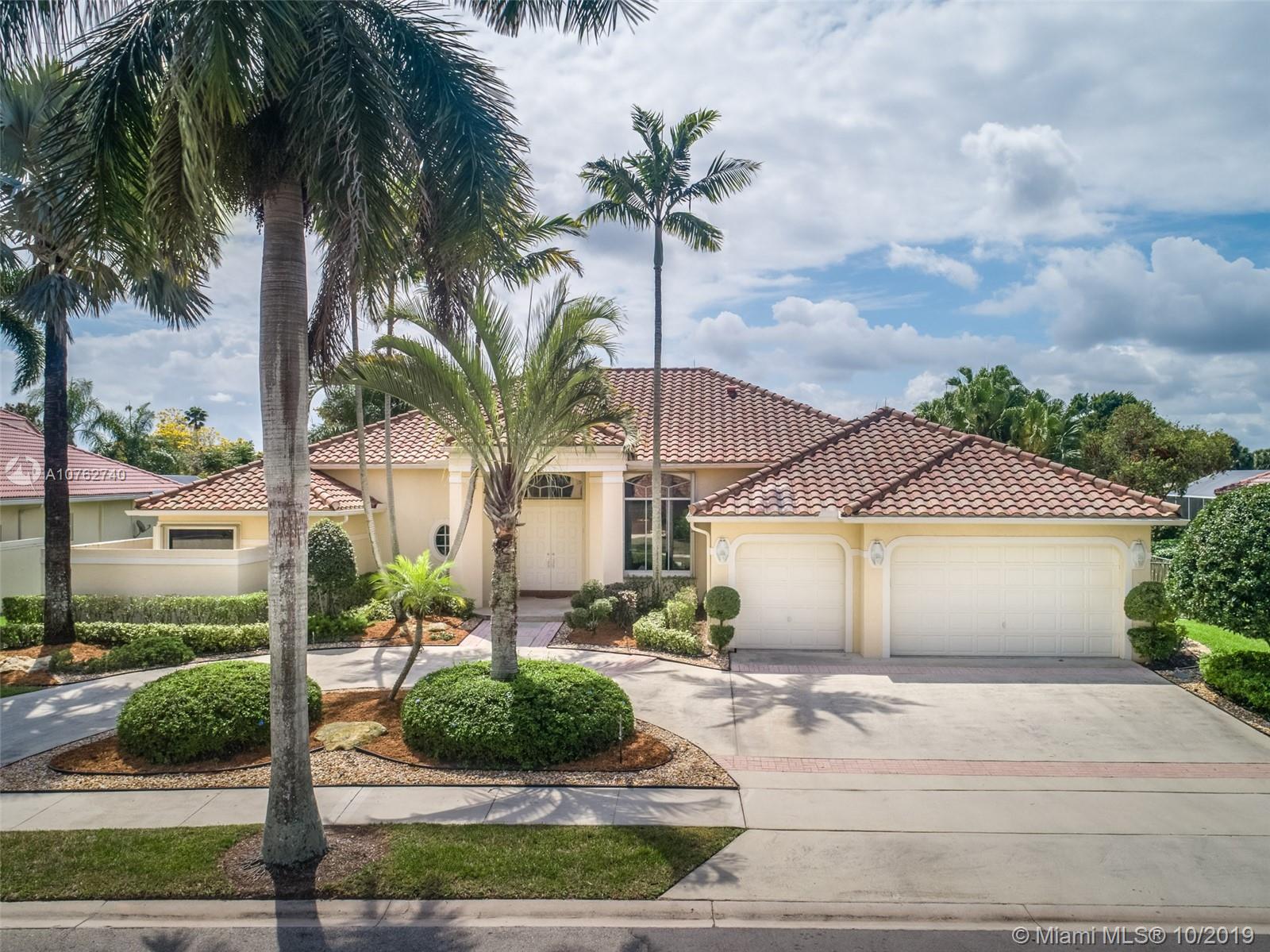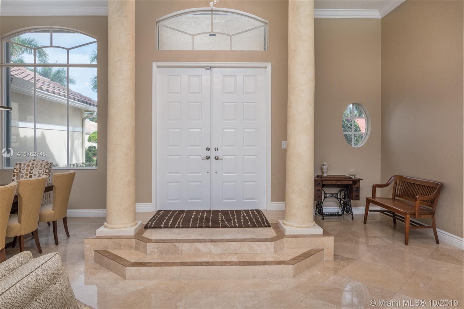 SPECTACULAR VIEWS!! Take in expansive views of the golf course from one of the largest yards in Weston Hills! Gorgeous renovated contemporary kitchen w/ stainless steel appliances, double oven, warming drawer, wine fridge & quartz countertops make it a chef's dream. Phenomenal chandeliers sparkle in dining room, entry and kitchen. Soaring ceilings, large windows & open floor plan with gleaming marble floors create spacious home flowing into sensational screened-in patio & porch and oversized yard. Grand master suite features built-in closets. Perfect for entertaining, this private oasis is located on a tranquil cul-de-sac street and features a three car garage and circular driveway with room for 7-8 cars. Accordion shutters and newer roof.
