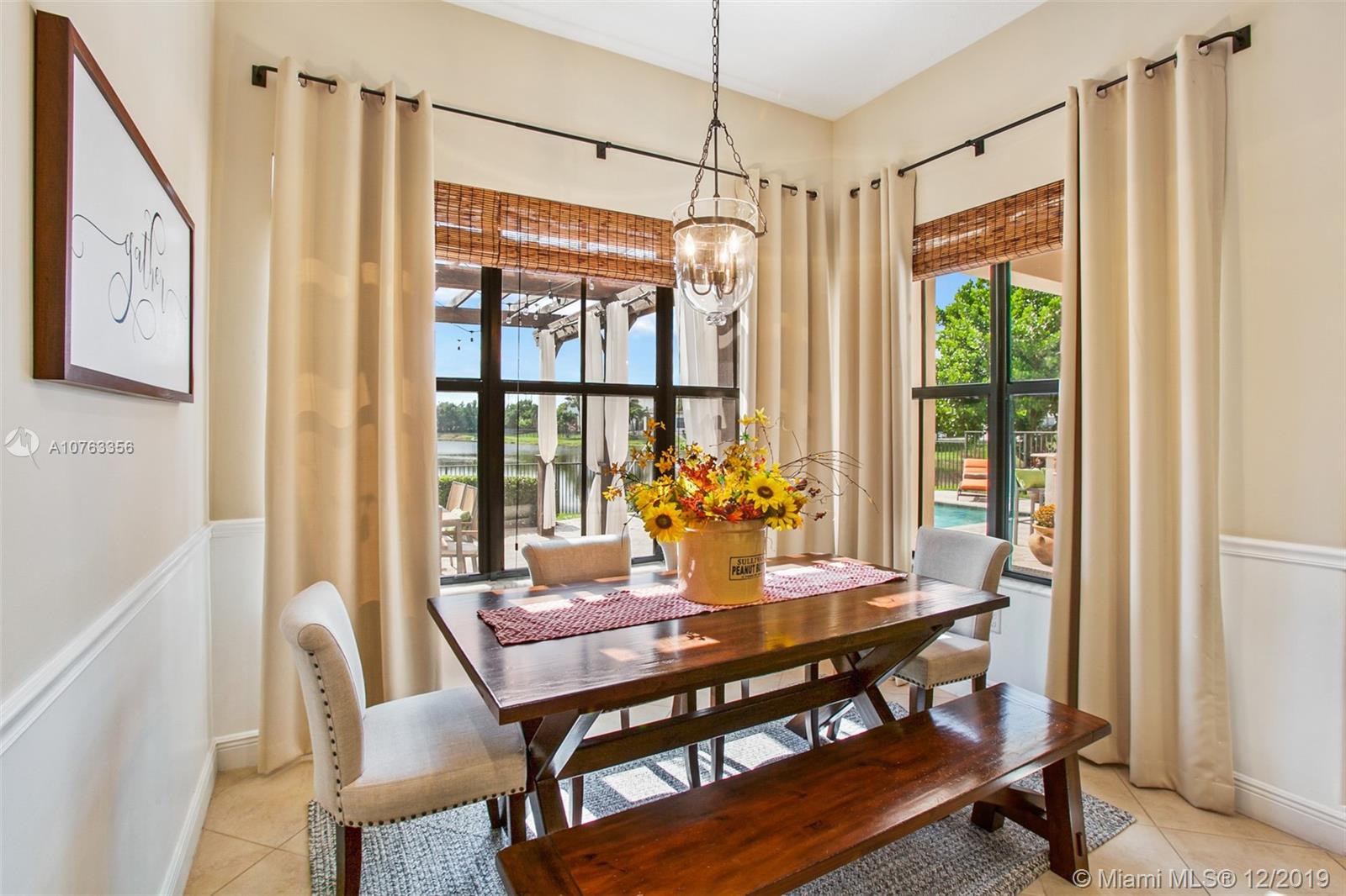 This elegant lakefront Cooper City smart home has too many upgrades to mention here. Upstairs, an 18' by 13.5' loft relishes alongside the Owner's suite which overlooks the custom built heated saltwater pool/summer kitchen. One bedroom is downstairs. The Jack and Jill bedrooms encompass the loft as well. Our 24 hour guard gated community boasts an extravagant clubhouse with all the amenities including seperate cardio and weight studios. Upon your tour, you shall find a game room, bike trail, basketball and tennis courts three play grounds and two dog parks. HOA fees are essentially included in the property taxes. Zoned for Embassy Creek Elementary.