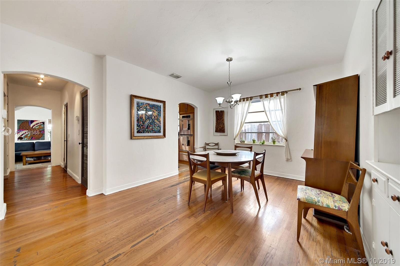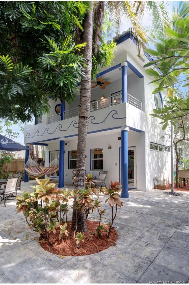 This Deco home in Mid-beach has been updated/renovated. 2nd story addition with master bedroom and bath. Bamboo flooring and original wood floors throughout. Kitchen updated with Corian counter tops and SS appliances. Separate garage building. Only blocks from the beach, the home offers 4 bedrooms and 3 baths with a covered patio and beautiful garden. Separate garage. Must see to appreciate all the special touches - glass beaded mirrors, artistic tiled bathroom. Built in shelves. Separate entry way. Only 3 owners. Call LA to show.