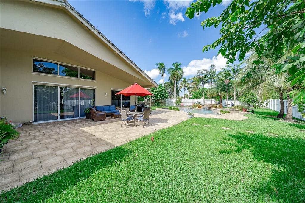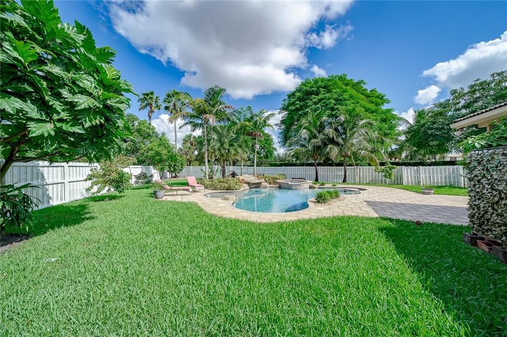 THIS ONE CHECKS ALL THE BOXES! 4 BEDROOM 2.5 BATH, SINGLE STORY, EXTENDED CIRCULAR DRIVEWAY, PARKS 6+CARS EASY, NEWER A/C, 12,000SQFT+ HUGE PIE SHAPED YARD WITH NEW SALT WATER POOL/SPA THAT FEATURES LED LIGHTING, WATERFALL, HEATED AND ALL WORKS FROM REMOTE. OPEN FLOOR PLAN, ENGINEERED HARDWOOD IN ALL BEDROOMS. GRANITE KITCHEN COUNTERS WITH SS APPLIANCES. OTHER FEATURES INCLUDE, UPDATED CABANNA BATHROOM, FULL HURRICANE PROTECTION, FRUIT TREES AND IS FULLY FENCED.