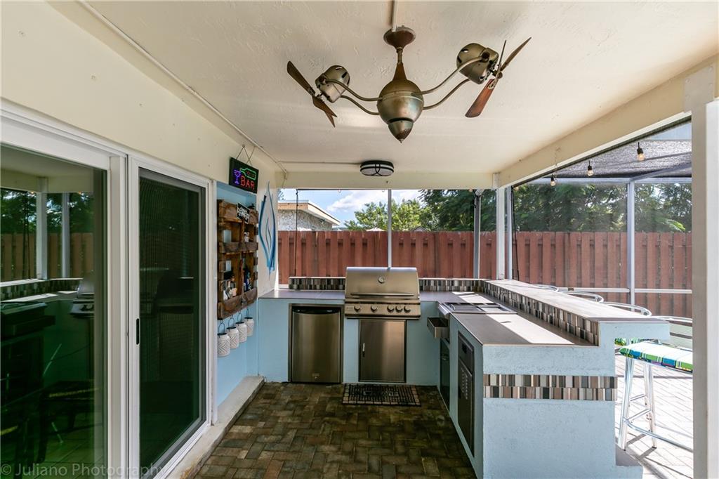 THIS HOME IS AN ABSOLUTE GEM! It all starts with an amazing outdoor entertaining area. Get ready to fire up the grill on your built in outdoor kitchen. Your friends & family will have plenty of sitting area either by the outdoor kitchen or on the large covered paver patio where you can easily sit 8 people. A little hot? Then dive into your screened in salt chlorinated pool. Enjoy your privacy as you back up to a wide canal. The inside doesn't disappoint either. This home features impact windows & doors, bamboo floors throughout the living area, updated kitchen with white cabinets, tile backsplash & eat in area. The A/C was replaced in 2018, & gas water heater in 2019. No popcorn ceilings, double wide driveway provides extra parking, fenced yard & Ring doorbell. Don't miss out on this one!