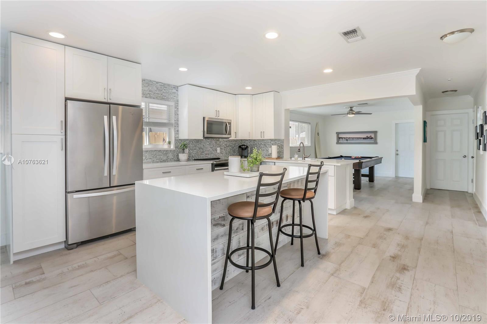 Exquisite Home on One of The Most Prestigious Streets in Hollywood~Great Location just North of Hollywood Blvd. with the Intracoastal, Beach, Shops, Eats, Golfing and Entertainment within a Mile Radius~Tastefully Updated 3 BD / 2 BA with 1 CG~Completely Remodeled Kitchen with 42" Upper Cabs & Soft Close~Quartz Counter Tops & Quartz Waterfall Island with Storage Plus Sitting Area~New Whirlpool SS Appliances~Glass Tile Backsplash~Crown Molding in Living Room, Dining Room, and Family Room~New Porcelain Wood Plank Flooring Throughout~Completely Remodeled Bathrooms with Glass Tile Showers~Spacious Master Bedroom~New A/C with Nest Thermostat~New Wood Fence with Marine-Grade Aluminum Framed Entry Gates~Impact Doors & Windows~Ample Garage Storage~Resurfaced Garage Floor w/ Epoxy~Marble Front Porch