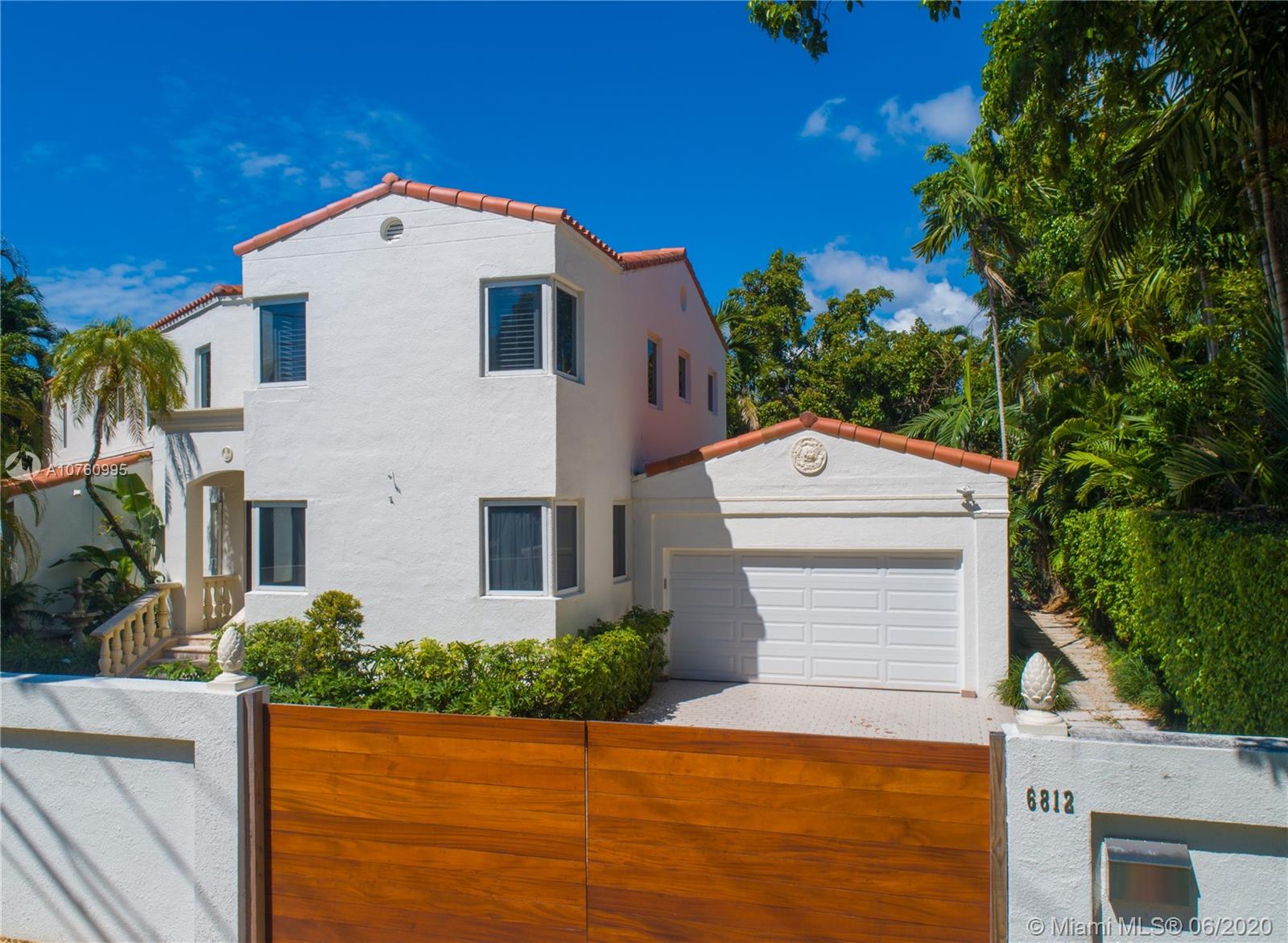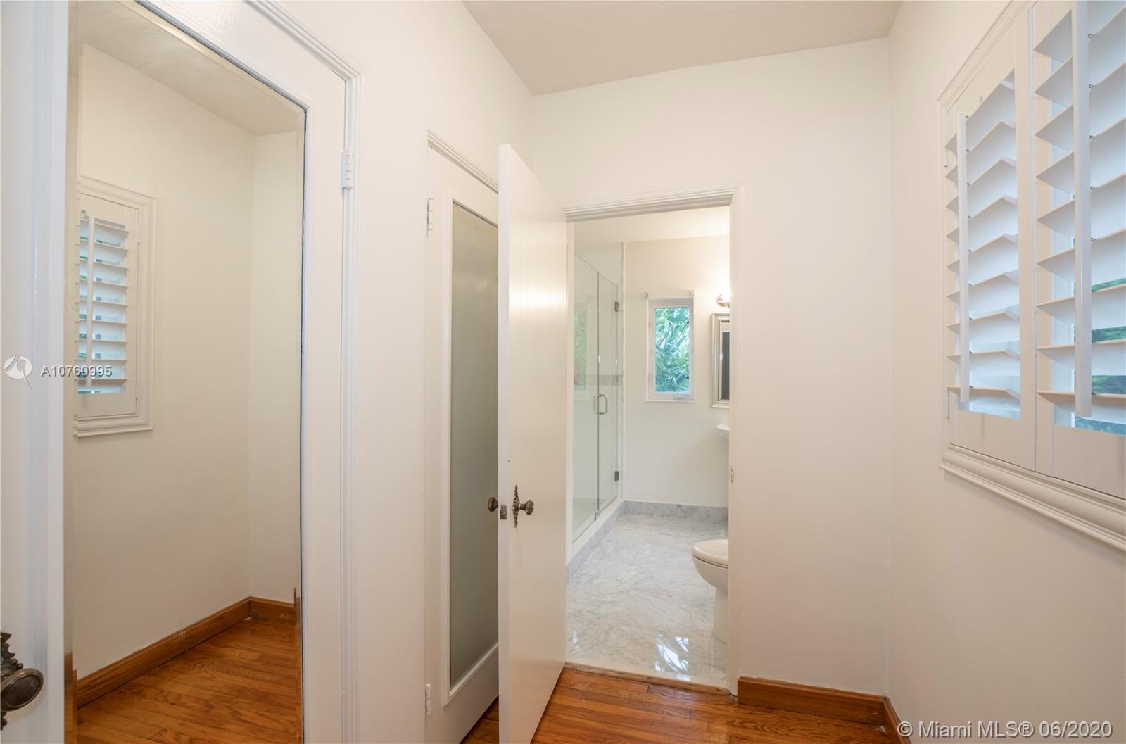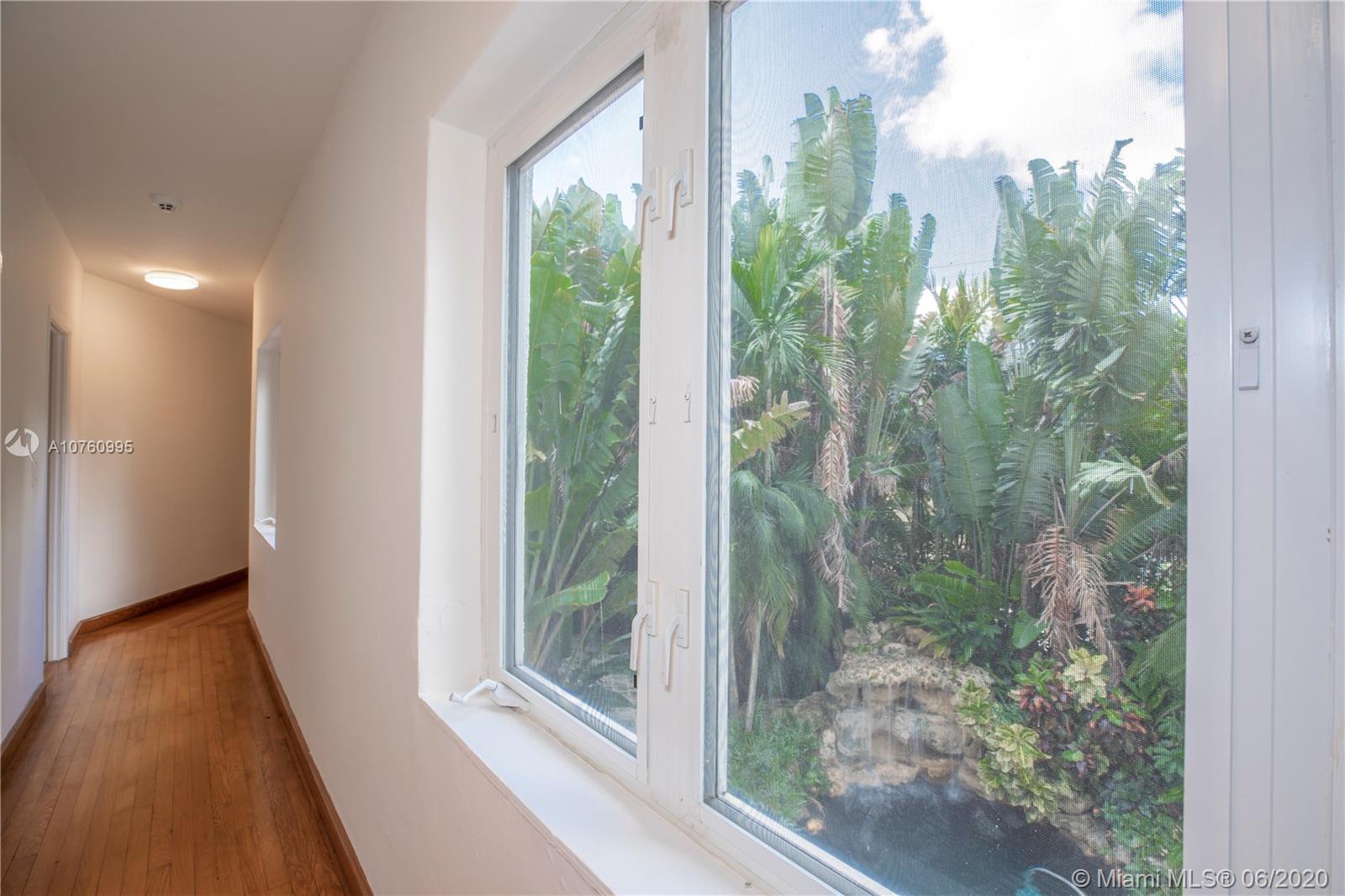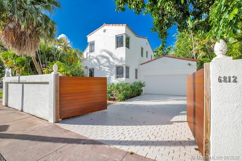 Centrally located retreat is larger than you think! This charming and gated 1930's Gables home boasts 5 bedrooms, 4.5 bath + home office. Escape the hustle and bustle and enjoy this tropical, peaceful Miami oasis. High ceilings, wood floors, cozy fireplace and lots of surprise alcoves like a wine bar off the living room make this home an unexpected rare find! Wide open living space leads to peaceful sunroom with floor to ceiling windows overlooking lushly landscaped yard. The heated pool and spa feature a cascading tropical-style waterfall that is a beautiful focal point. Bring your toothbrush and move in or consider some minor renovations to open up the floor plan even more - see renderings included with photos. Owner will include plans with purchase. Spacious guest house.