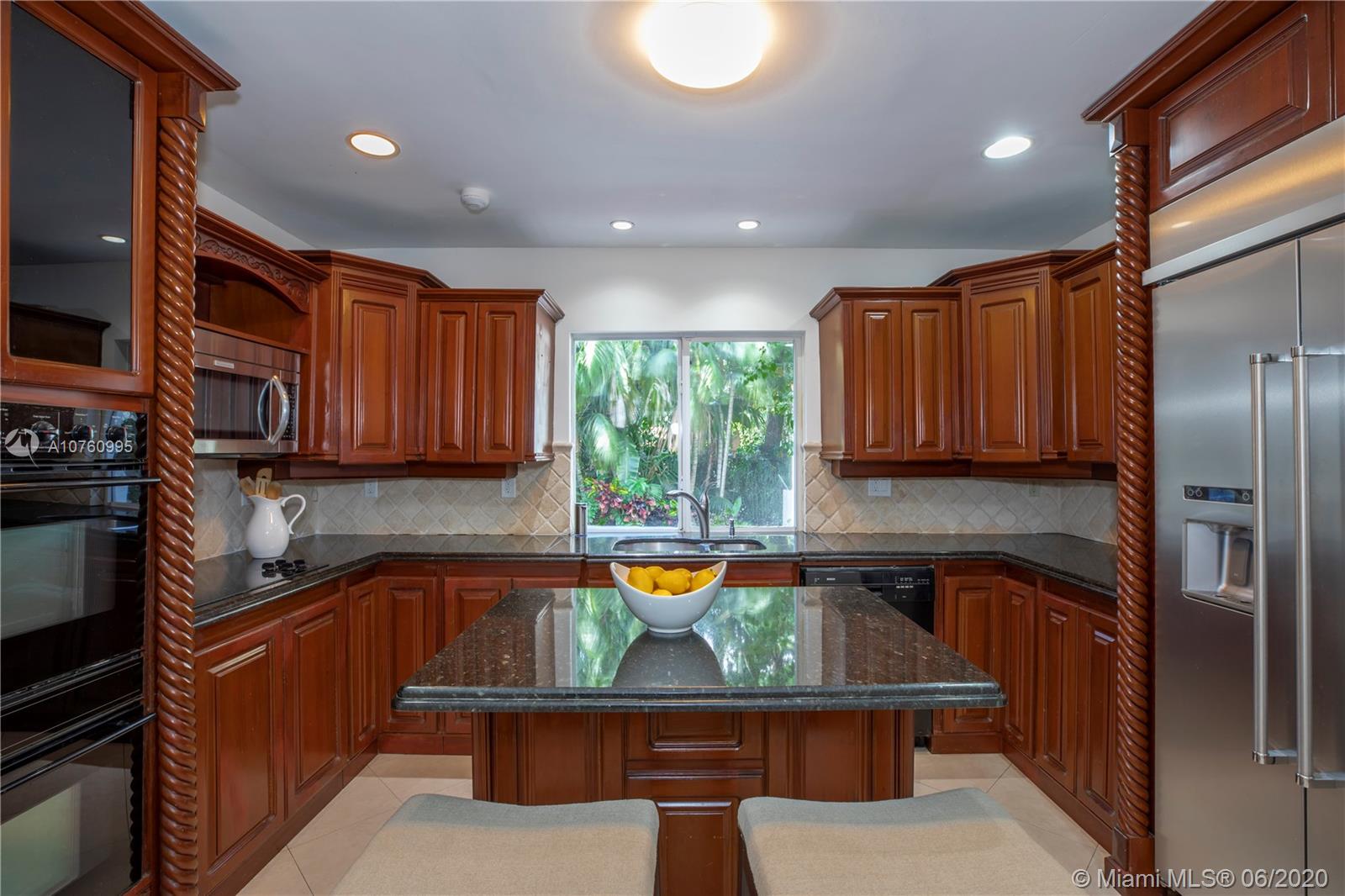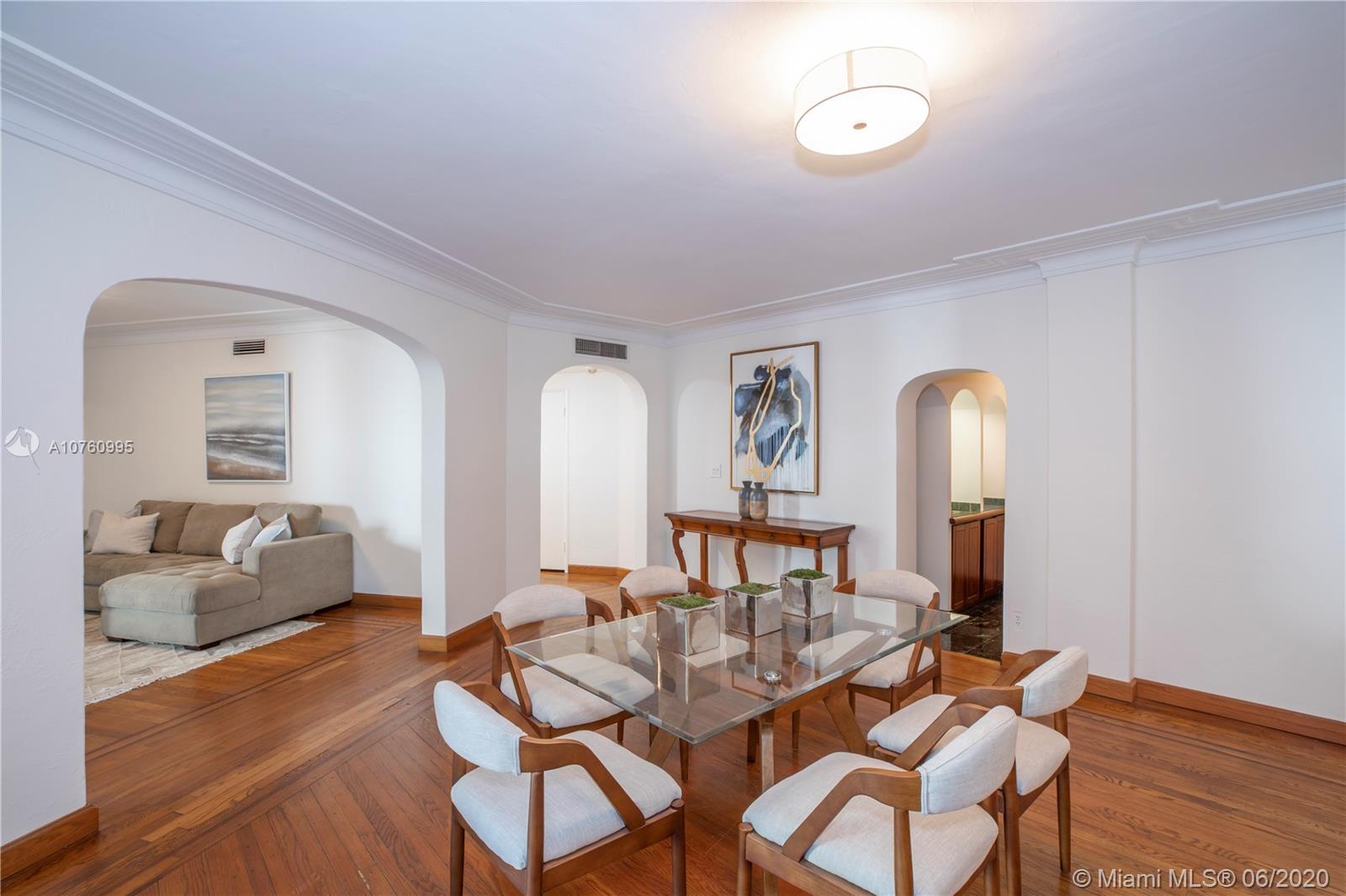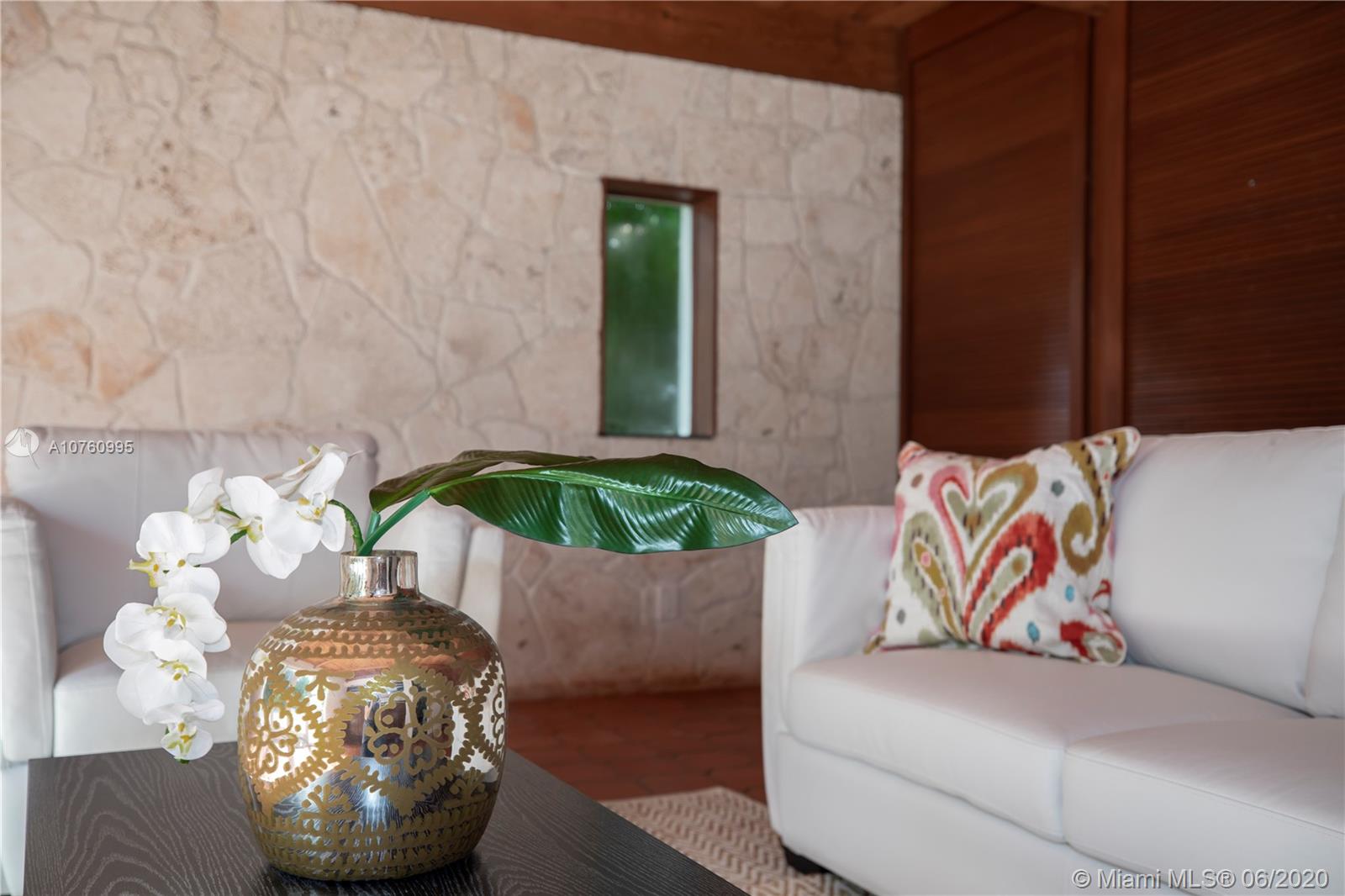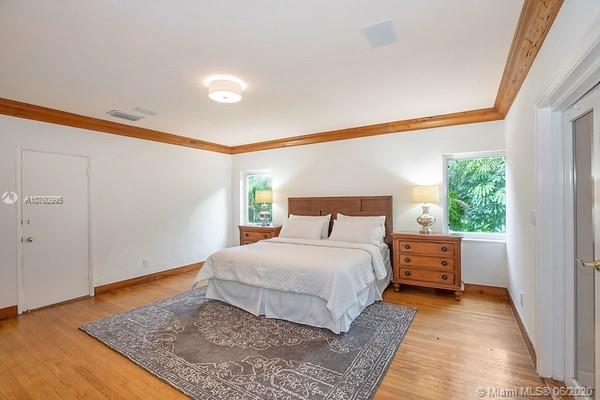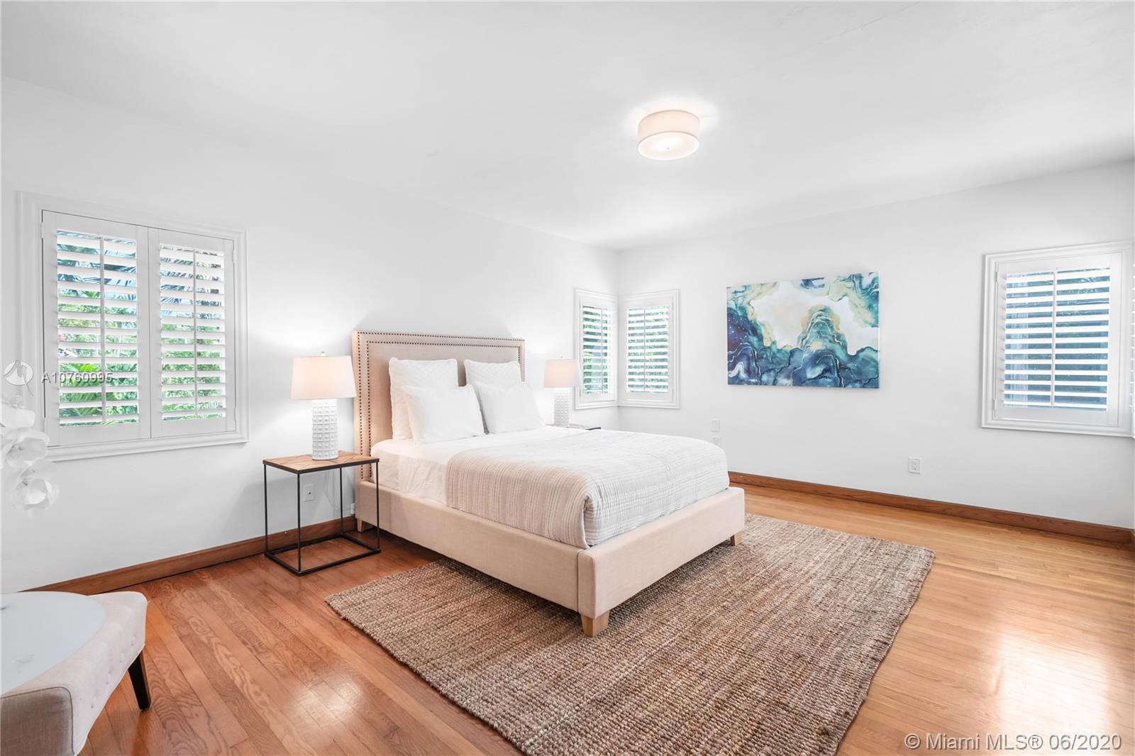 Centrally located retreat is larger than you think! This charming and gated 1930's Gables home boasts 5 bedrooms, 4.5 bath + home office. Escape the hustle and bustle and enjoy this tropical, peaceful Miami oasis. High ceilings, wood floors, cozy fireplace and lots of surprise alcoves like a wine bar off the living room make this home an unexpected rare find! Wide open living space leads to peaceful sunroom with floor to ceiling windows overlooking lushly landscaped yard. The heated pool and spa feature a cascading tropical-style waterfall that is a beautiful focal point. Bring your toothbrush and move in or consider some minor renovations to open up the floor plan even more - see renderings included with photos. Owner will include plans with purchase. Spacious guest house.