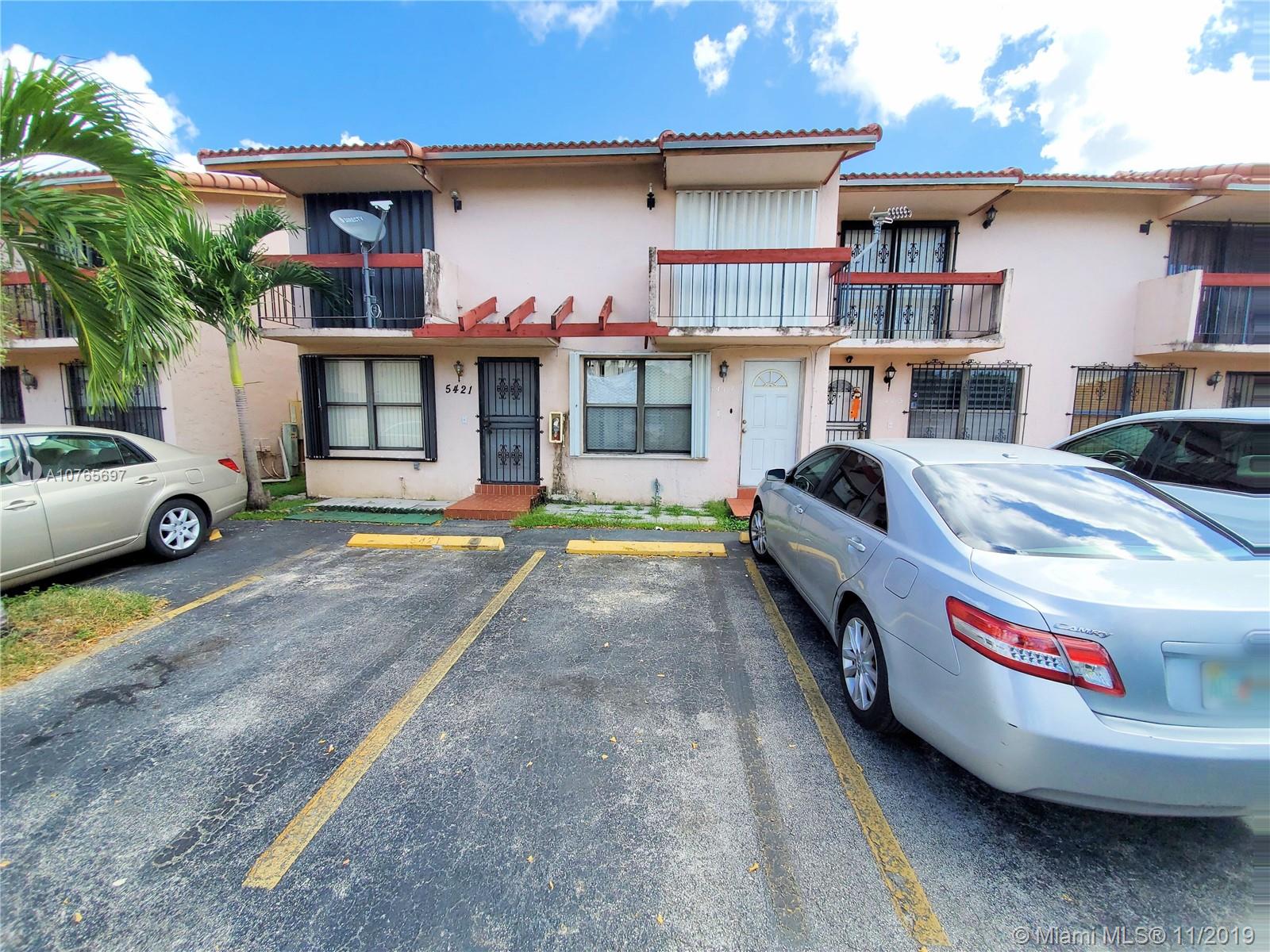 Two-story Townhouse condo with 2 bedrooms, 1.5 baths, and patio in quiet West Hialeah community. New 2018 Roof, dryer inside unit, and 2 parking spaces. Very low HOA fee! Just minutes from Palmetto 826, Westland Mall, Hospital, and restaurants.