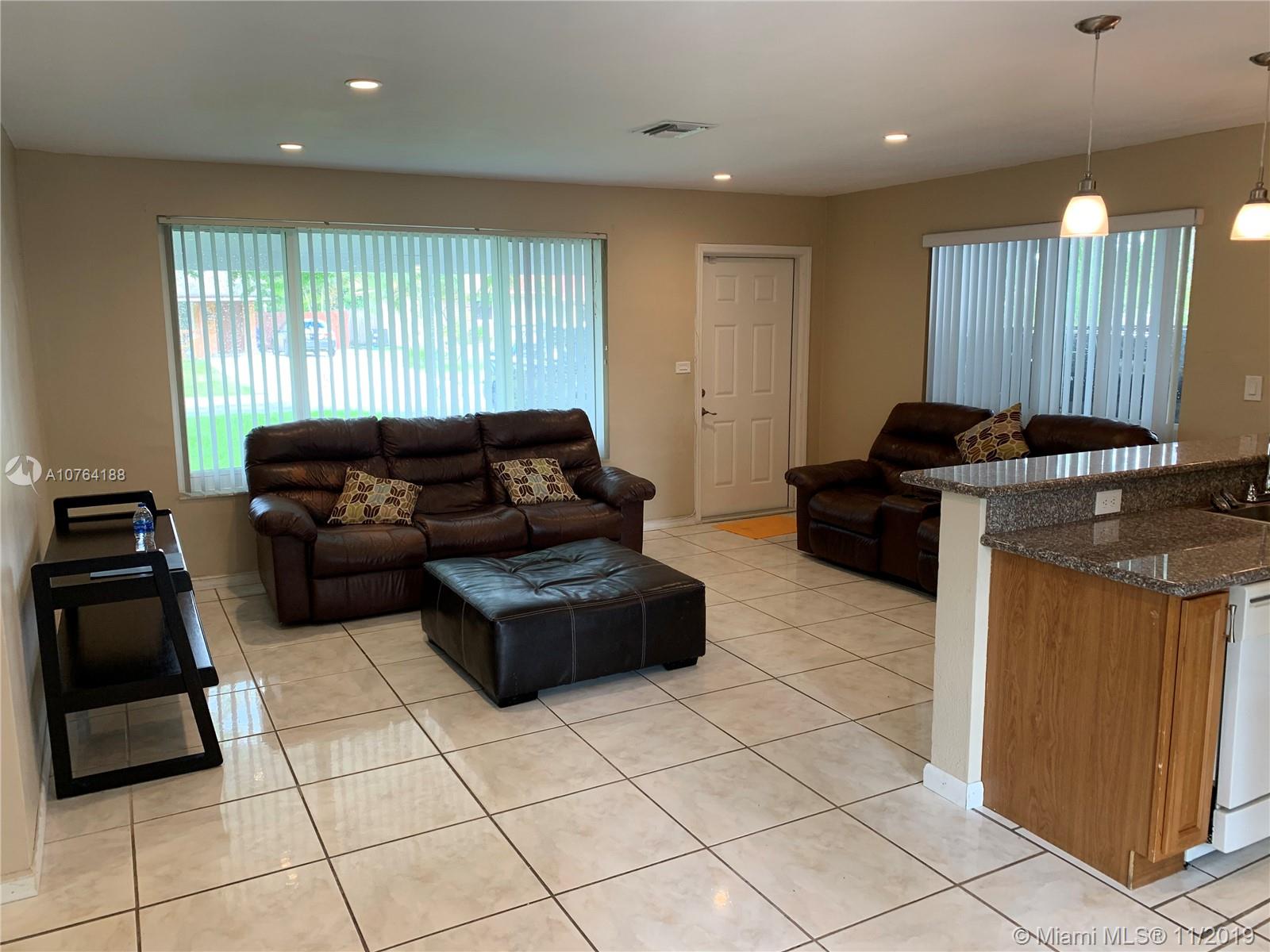 Beautiful freshly painted 2bd home with NO HOA located in Miramar. MOVE IN Ready. Home well lit with natural lighting. All new impact windows and door (2018). Property set back allowing plenty of space for parking in front. Backyard has large fruit trees and is large enough for entertaining with exterior lighting. Plenty of possibilities for expansion and space for a pool. Interior of house, kitchen remodeled, large tiles throughout and all interior doors are new. New roof. Several renovations made throughout the interior house. Low property taxes. Great starter home for first time Buyers or for Buyers wanting the expand family.