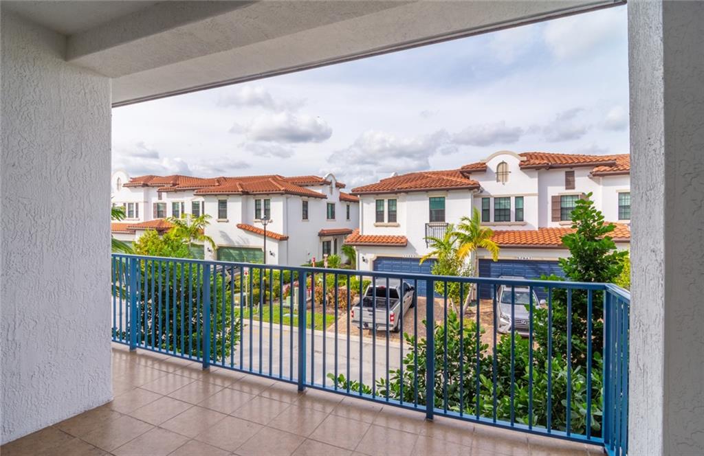 Spacious tri-level townhome w/ attached 2 car garage!One bedroom on ground level w/ on suite & large walk-in closet!Gorgeous upgrades throughout this home include:Large kitchen w/ ivory color 42" cabinets, granite tops PLUS prep island.Breakfast bar flows into the bright & large living rm featuring built-in custom mirrors. Stunning South Florida sunsets from one of the largest & most spacious 2nd story covered terraces and perfect for parties! The 3rd level boasts an oversized master suite w/ sitting room,large walk-in closet,his & hers sinks,roman tub, walk-in shower w/ frameless glass & built-in bench. 3rd bedroom features an on suite bathroom perfect for your guests. Located in the 1st phase w/ a very short walk to the pools, clubhouse & mailboxes. Great tenant if you want to buy & rent