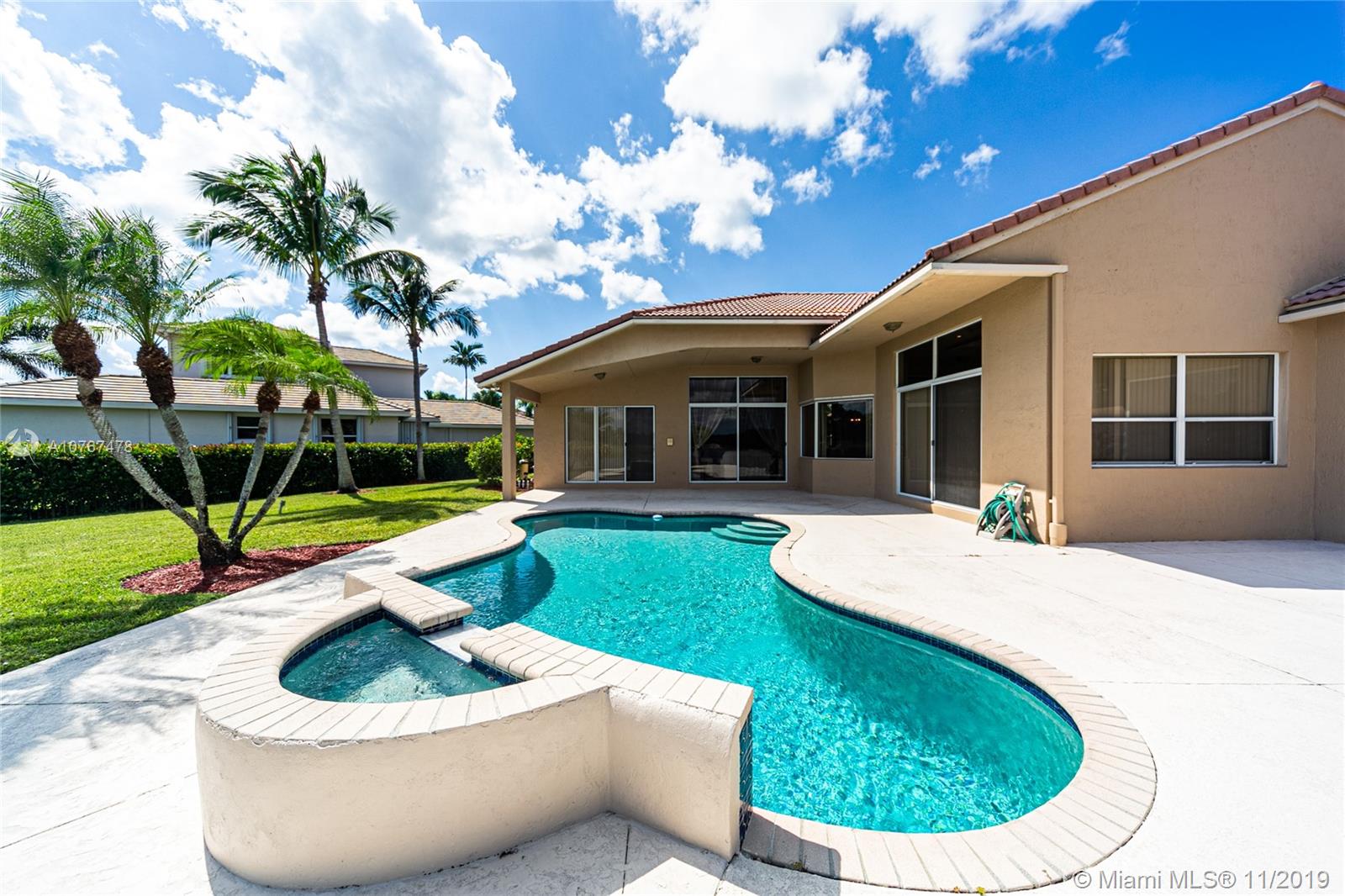 LIVE IN A SPACIOUS HOME IN EXCELLENT CONDITION, LOCATED ON A FABULOUS PRIVATE LOT ON A CUL DE SAC STREET. 5BR/3BA. WITH LAKEFRONT AND GOLF COURSE VIEW, FEATURES: SPLIT FLOOR PLAN,OFFERS A GREAT OUTDOOR SPACE, TERRACE, BACKYARD, JUST PAINTED, ATTRACTIVE LANDSCAPING, GRANITE COUNTER TOPS, OPEN KITCHEN, ELEGANT DINING/LIVING, 2 CAR GARAGE, POOL, PERFECT HOUSE FOR ENTERTAINING FOR YOU AND YOUR FAMILY.