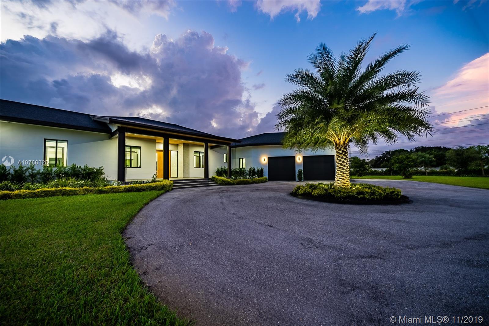 Bright & Airy in Davie! Transitional design with tons of natural light that permeates all areas of this custom-built residence. Nearly 11-foot ceilings, 8-foot doorways and 45-inch ADA-compliant hallways showcase super-sized dimensions. 1.61 Acres w/electric gate and side gate w/direct access to 1,000-Sq.Ft. detached flex structure w/sep. electrical panel. Special finishes include foam-insulated ceiling & walls, solid-core Colombian wood front door, porcelain plank flooring, LED lighting, impact glass, custom window treatments, LG S/S appliances & open kitchen format to living/dining, stylish concrete accent wall finishes, backlit LED-illuminated mirrors, farmhouse doors in master closets. Beautiful yard w/room to roam and enjoy the outdoors & fully fenced. Property is smart-home ready.