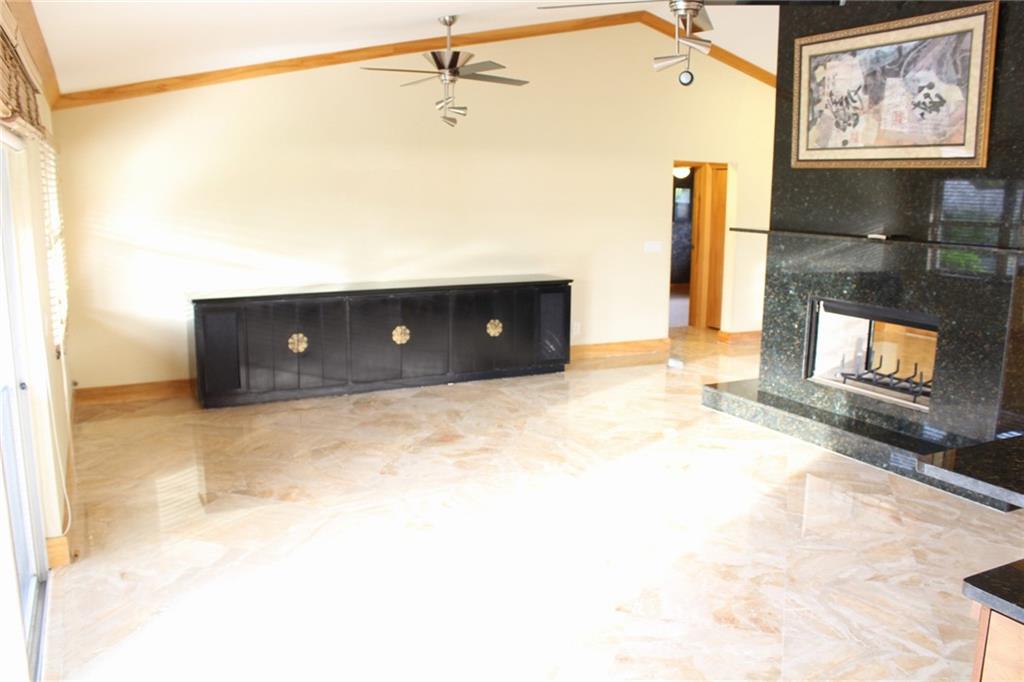 Come see this luxuriously updated home on over an acre of pristine land lined with fruit trees. Thekitchen is a chef's dream with a high-end Wolf gas range with infrared gas grill and commercial grade hood vent. The cabinets are custom built from the same tree with continuous grain flow from door to door. Marble floors throughout the living area with a granite double-sided fireplace. Marble master en suite from ceiling to floor and the shower has more jets and shower heads than you could ever dream of. Spend quality time relaxing or hosting parties under the oversized tiki hut. Property is fenced all the way around the backyard. There's an attached 2 car garage and a separate out building with parking for a boat and RV, both inside and out. No HOA! Come make this amazing home yours today!