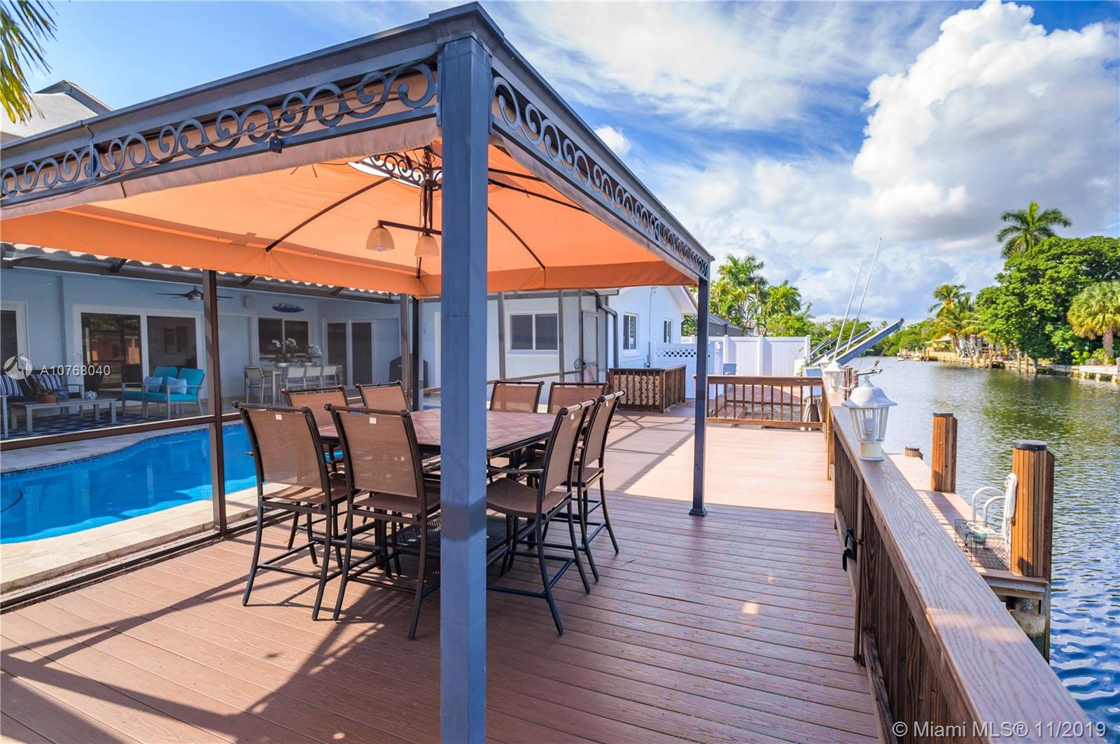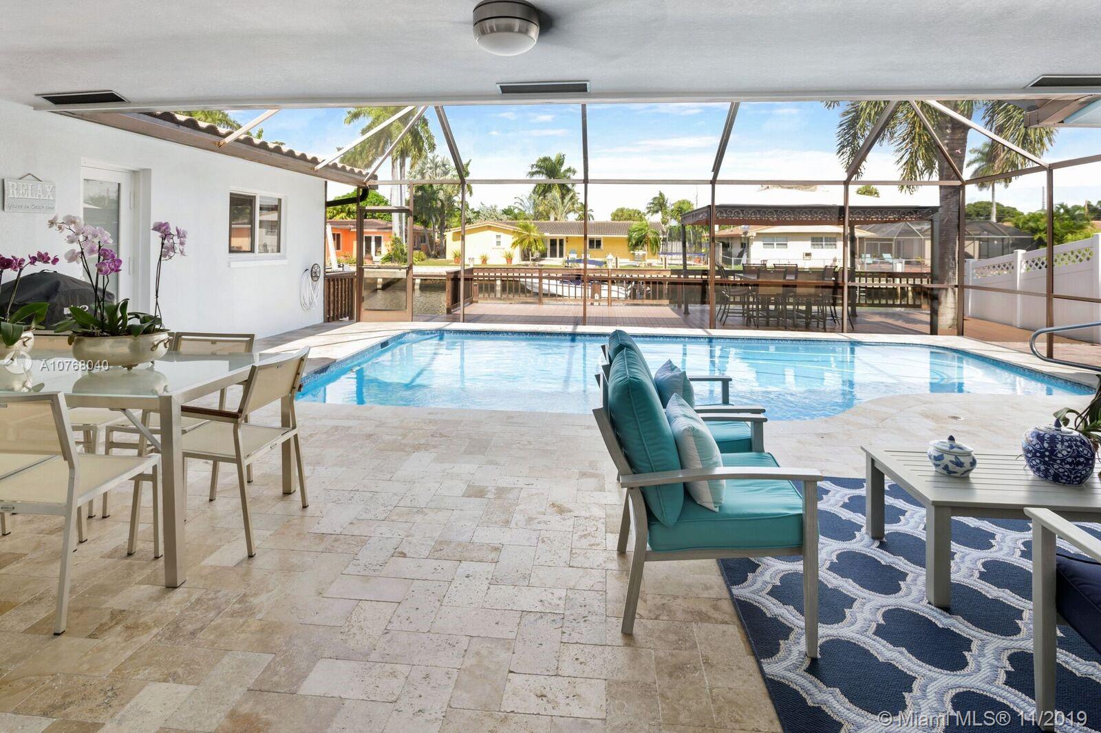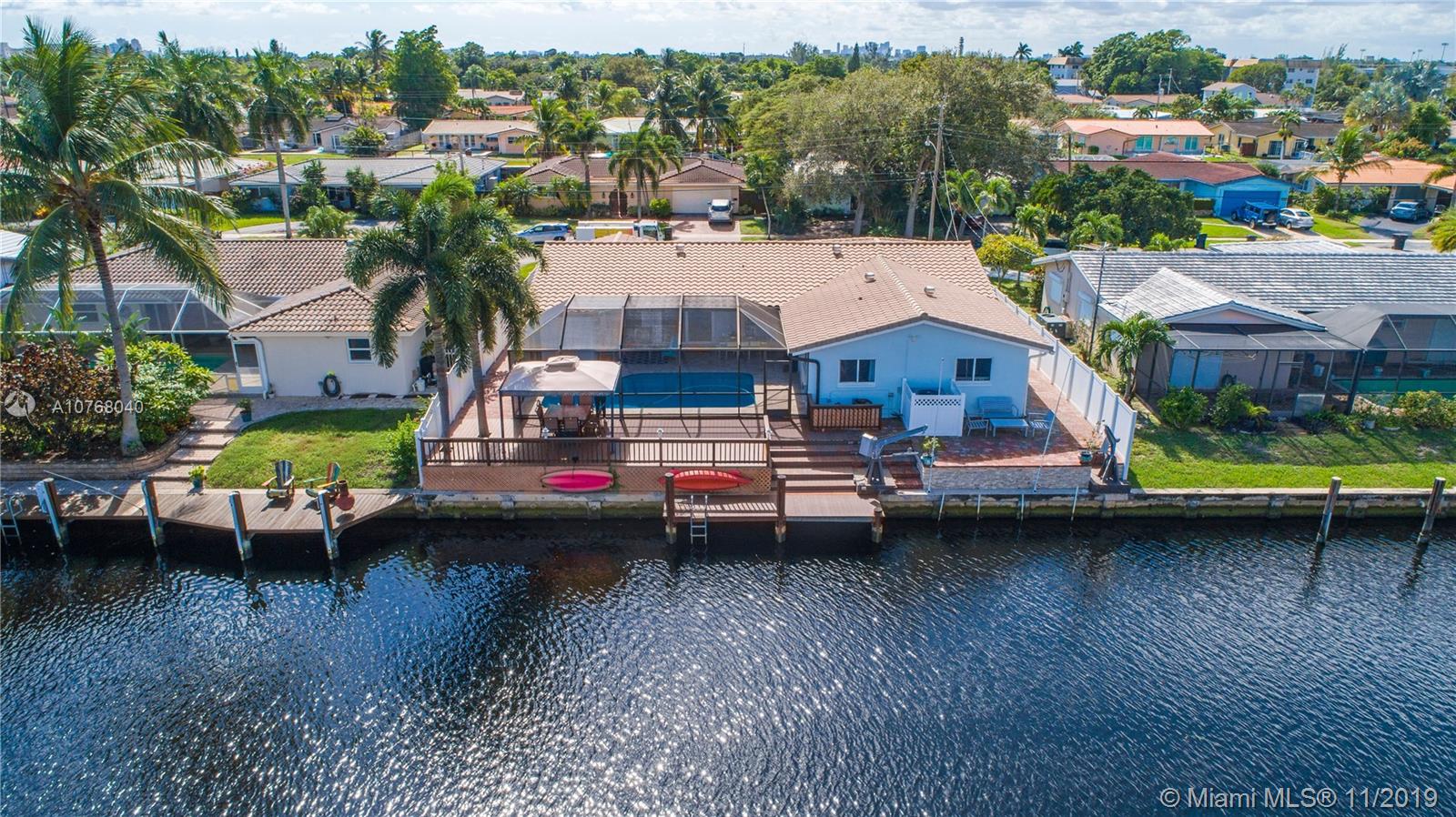 A Coral Ridge Isles STUNNER! This Fabulous Waterfront Home has 4 Spacious Bedrooms with Generous Closets and 2 Updated Bathrooms. Expansive Kitchen Overlooking the Heated Pool and Water Views. Live the Outdoor Lifestyle, enjoying the Screened-in Pool and Patio area year round. Extensive Deck for Entertaining with Large Dock and Boat Lift for up to 12,000lbs. 75ft of Waterfront with Direct Ocean Access. Impact Windows, Doors and Great Full Fold-In Sliders. Newer Roof, Newer AC, Tank-less Water Heater. Extended 2 Car Garage. Square Footage Per Seller Information - 2457sqft Living Area