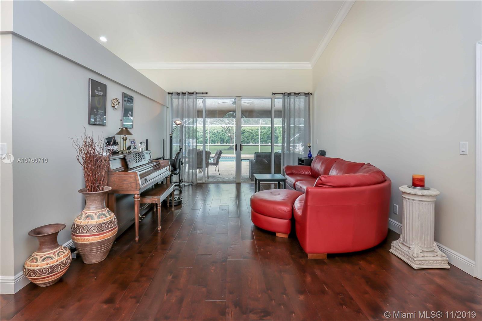 Desirable Mission Bay Community, Cordova Estates! 4 Bedroom, 2.5 Bath, Smart Home, with vaulted ceilings, Hardwood floors in living areas. Crown molding throughout. Spacious Master BR with French Doors leading to patio & pool. Master Bath with Double vanity, Spa Tub & glass enclosed shower. Walk in closet. Updated Guest bath rooms. Plantation shutters in dining, family & master. Kitchen with wood cabinets, pantry, granite counters, stainless steel appliances, open to family room. Large Patio & Pool area screened in, great for entertaining. Heated Salt water pool. Huge Private backyard featuring 2 fully fenced in areas including a dog run with automatic electric dog door. Newer Roof, A/C, Ducts. New high end washer & dryer. EV plug/outlet for E CAR. Low HOA. Fantastic Clubhouse