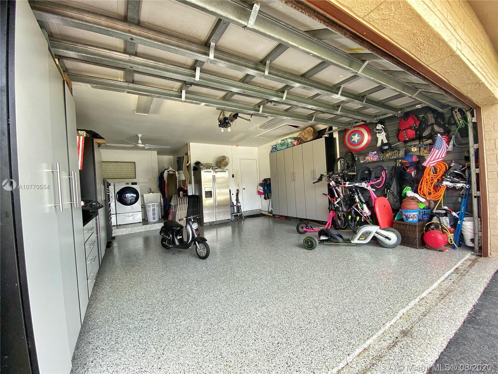This beautiful 4 bedroom/ 2.5 bath 2,733 Sq Ft home is a Must See. Featuring custom garage cabinets with Epoxy new floors and impact door; french doors with built in blinds throughout; fully renovated master bedroom and bath with custom built in closet and extra large shower; soft close cabinets; new vinyl wood bedroom floors; wireless alarm system; newer appliances; accordion shutters (including porch); central vacuum system; brand new washer and dryer; built in surround sound radio/intercom; door scope peephole; newer tile roof; large backyard with storage shed. Located in a lovely neighborhood with great schools, parks and shopping centers nearby. NO HOA! Let's schedule your showing today!