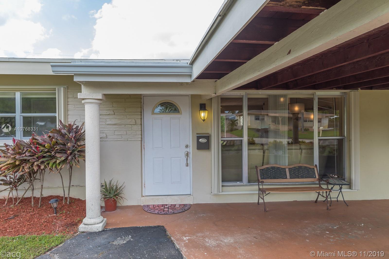CHEERFUL SETTING FOR A HAPPY HOME! Casa Prus is a hidden Hollywood gem, is open, inviting, and welcoming with a beautiful curb appeal… YOU ARE REALLY GOING TO LOVE THIS ONE! Offering, split floor plan, 3 bedrooms, 2 bathrooms, remodeled kitchen, Den/office, laundry-utility room and carport. Great size kitchen remodeled in 2016 with a traditional look, granite counters and stainless steel appliances. Storm ready with accordion hurricane shutters installed in 2018. In addition, 16 inch ceramic tile, 2018 washer and dryer, tool shed, circular driveway, open porch, patio and room for pool. The location is GREAT, just minutes to the HOLLYWOOD BEACH and NEW HARD ROCK GUITAR hotel and walking distance to best area shopping center. FAMOUS LAST WORDS!! GOING, GOING, GONE.