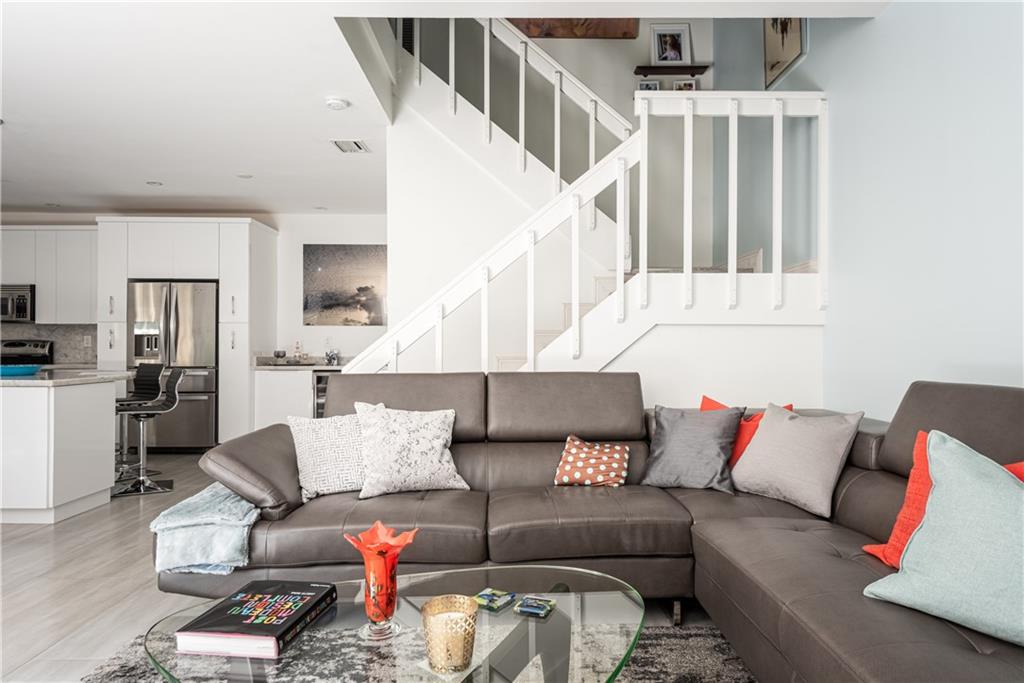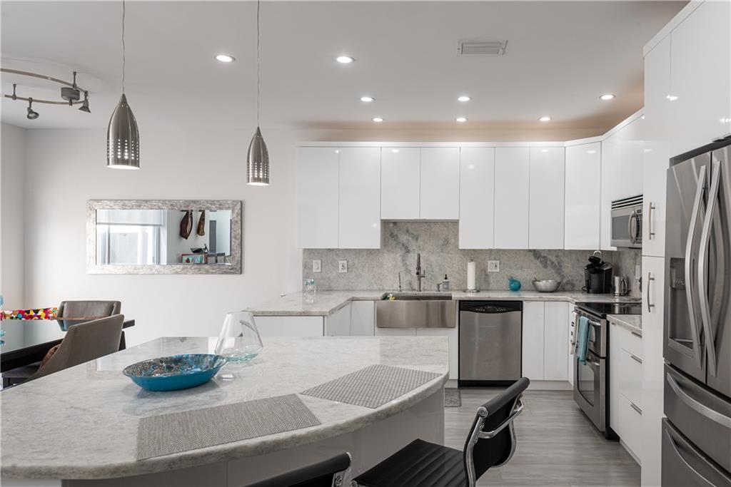 COMPLETELY REMODELED 3/2.5 TH WITH STUNNING NEW ENLARGED KITCHEN THAT FEATURES QUARTZ COUNTER TOPS, STAINLESS STEEL APPLIANCES, LARGE ISLAND THAT SEATS 6 COMFORTABLY, BUILT IN WINE COOLER, AND NEW WHITE CABINETS WITH PULL OUTS AND SELF CLOSING DRAWS. RECESSED LED LIGHTING THROUGHOUT THE KITCHEN AREA. BEAUTIFUL PORCELAIN FLOORS DOWNSTAIRS AND TILE/WOOD UPSTAIRS. NO CARPET. 1 CAR GARAGE . MASTER BEDROOM OFFERS A LARGE WALK IN CLOSET, SCREEN IN BALCONY IN THE GUEST BEDROOM, AND HURRICANE ACCORDION SHUTTERS THROUGHOUT. POPCORN CEILINGS HAVE BEEN REMOVED AND NOW SMOOTH. DESIGNER BLINDS. PRIVATE COURTYARD WONDERFUL FOR ENTERTAINING, RELAXING, OR BBQ'S. CLOSE TO GUEST PARKING. GUARD GATED COMMUNITY 24/7 JUST 1 MILE FROM BEACH. AMENITIES INCL SWIM, TENNIS, GYM, CLUBHOUSE, BASKETBALL, & MORE