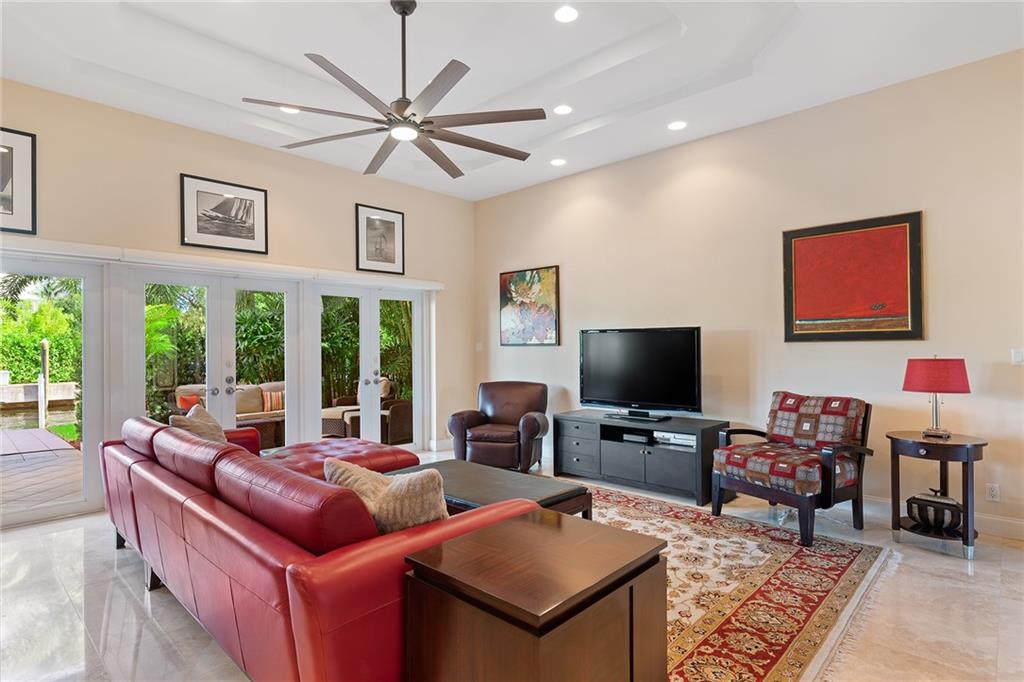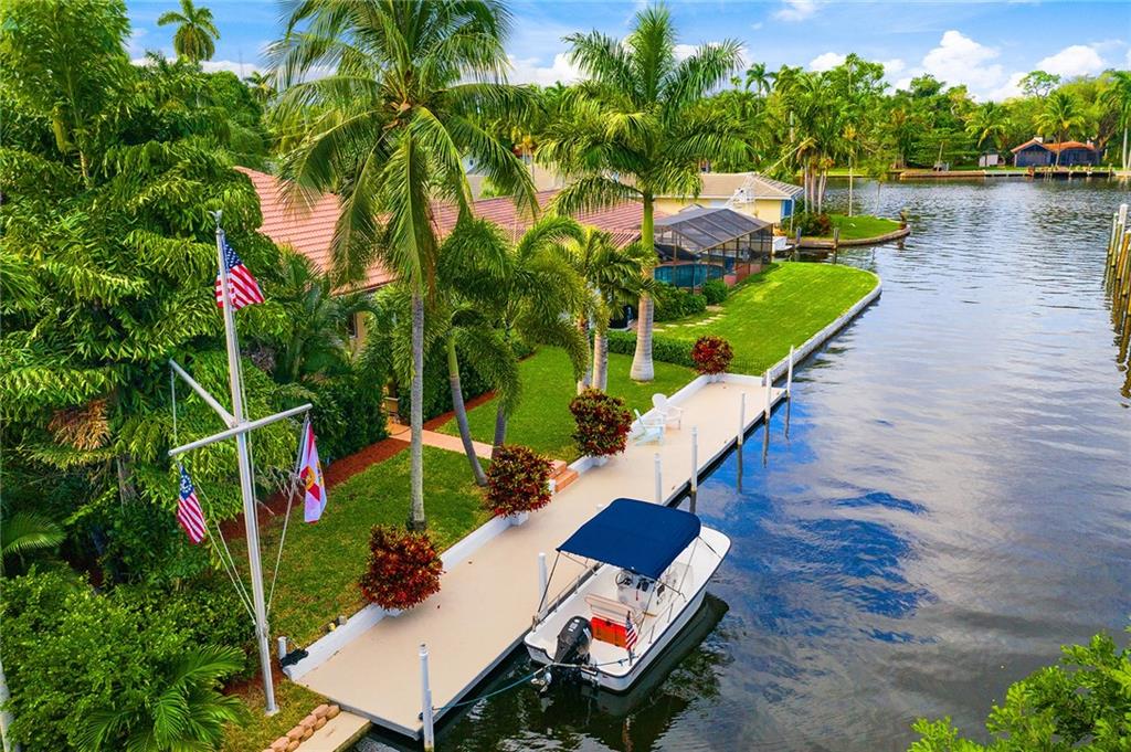 This beautiful, meticulously-kept split 3 bedroom, 3-1/2 bath home with 2,036 sq.ft. under air sits on 75' of the tranquil Tarpon River in the private gated community of Tropical Point, with no fixed bridges and only 2 houses off the New River. Relax on your covered patio with skyline views and enjoy watching the Jungle Queen and all of the yachts pass by. With 12' high ceilings, marble floors and open concept living, this home is an entertainer's dream. The kitchen features top of the line stainless steel appliances and a 15' curved granite bar. The master bedroom boasts a 16' x 5' walk-in closet with built-ins. There are PGT hurricane impact doors and windows throughout the home and an extra large attic. A circular driveway with a full size 2-car garage accents this Beauty On The River.