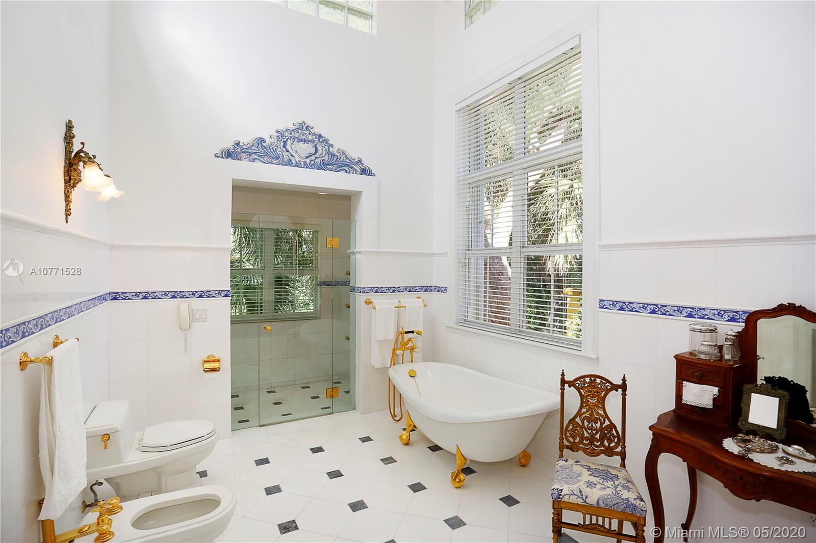 This masterfully designed 5 bedroom, 4.5 bath home (7,950 adj sf, $670/sf), on 1.1 acres, offers a fantastic opportunity to reside in Miami’s top gated community, Gables Estates. It features timeless crafted finishes, a wonderful floor plan, soaring ceilings and beautiful natural light throughout. Spacious interior living spaces, along with a large screened-in keystone patio with barbeque, oversized heated pool/jacuzzi and expansive yard create an atmosphere of warm and gracious living, along with plenty of room for kids to play and for year-round entertaining in intimate or large groups. There are custom built-ins throughout, a gourmet cook’s kitchen, exercise and playrooms, loads of storage, whole house generator, and more. Virtual photos show a variety of possible decorating styles.