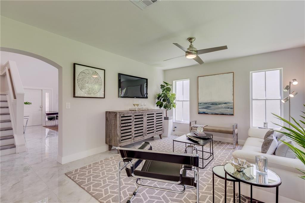 WOW! The house was completely remodeled one year ago. Contemporary Upgrades. New Exterior Paint. New Interior Paint. 18 Foot Living Room Ceiling. New Flooring Throughout the House. NEW STATE-OF-THE-ART Open Kitchen and Appliances. All 3 BATH renovated. New 7 Samsung Ceiling Fans on every room. All New Sinks, All New Faucets, All New Toilets, Plumbing Valves, New doors hinges, New doors handles. New garage door opener, A/C system refurbish, all doors and windows with hurricane shuttle and much more. All done by a licensed contractor and City Permits Must See. A GEM!