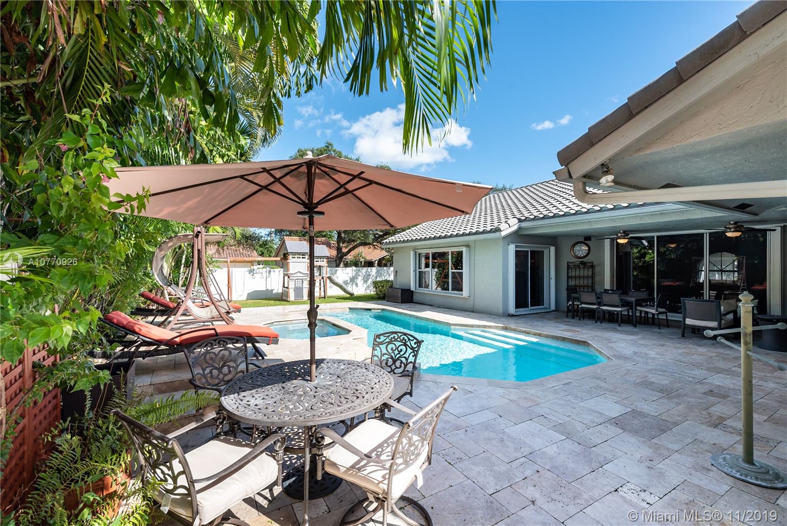 Light filled 5/3 Beauty on an Oversized, Corner Lot in Highly Desirable Westport! Custom Built Gourmet Kitchen: Stunning Black Granite Counter tops, Snack Bar, Movable Island, Built in Breakfast Nook, Newer Appliances: Dishwasher, Oven, Microwave, Disposal, Under Counter LED Lightning, 42” Wood Cabinets, Matching Pantry Doors. Split Floor Plan. Vaulted Ceilings, Flexible Living Spaces. Laminate, Tile Flooring. Enjoy Outdoor Living in the Beautiful Heated/Chiller Pool & Spa w/Waterfall Feature, Travertine Surround, Newer Diamond Brite. Enclosed Back, Newer Vinyl Fencing. Accordions Shutters, Oversized 2 Car Garage. Generator Ready. Newer Sprinkler System. Paver Circular Driveway. Tranquil Neighborhood. Very Low HOA. Near Houses of Worship, Restaurants, Shoppes, Highways.