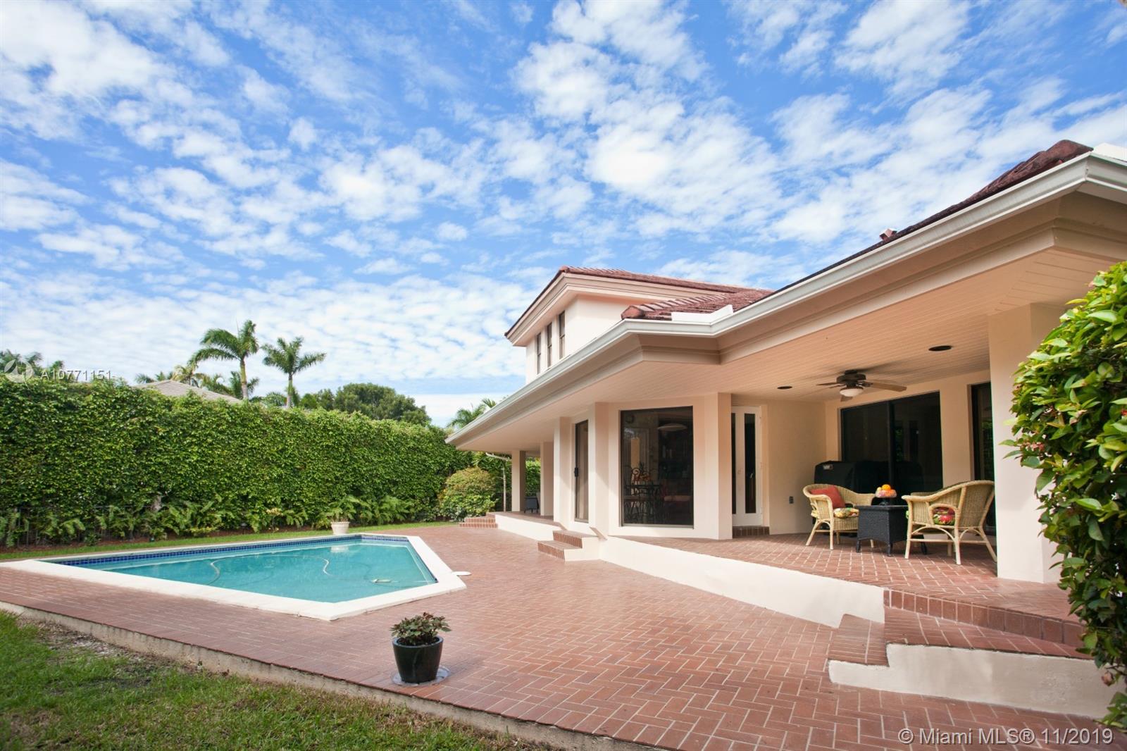 This light-filled one-story home located in gated, 24/7 security of Islands of Cocoplum, is perfect to downsize. Marble floors throughout, except for the guest bedroom upstairs, covered terraces overlooking the cozy patio and pool, circular driveway and 2-car garage. Beautiful modern eat-in kitchen and bathrooms. Enjoy island of Cocoplum amenities: lighted tennis courts, volleyball and basketball courts, spa-like ambiance, lap pool & hot-tub, club house, gym and more.