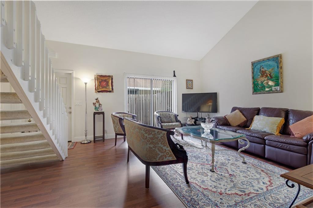Updated townhome, barely lived in and in a fantastic location! This townhome features freshly updated kitchen with granite counter, stainless appliances, soft close cabinetry. Huge vaulted ceilings enhance the feeling of space throughout the home both upstairs and down. Laminate floors downstairs, carpet upstairs. Extensive master suite is upstairs with a spacious walk-in closet and master bath. One bedroom downstairs plus private den/office (Currently used as another bedroom but no closet). Private fenced patio. Accordion shutters on windows and doors. Great location in west Sunrise right by the Civic Center. Take advantage of all the Civic Center amenities like their resort style pool, sports courts, gym, etc. Low HOA is only $135 per month. Two assigned parking spaces.