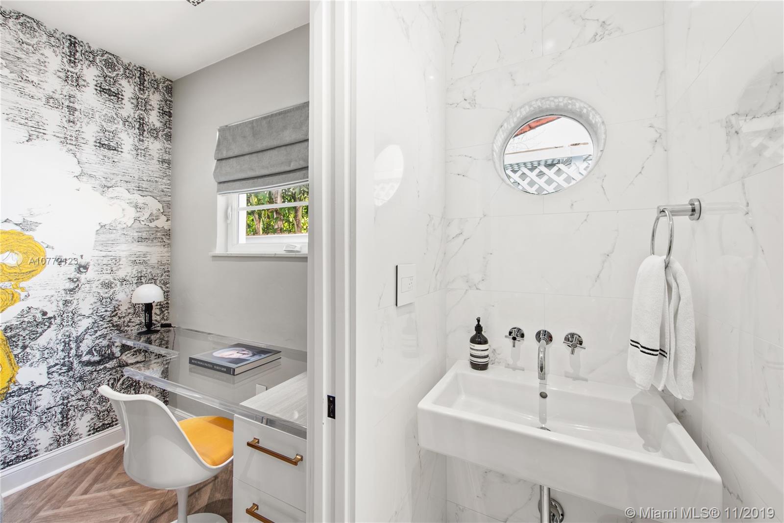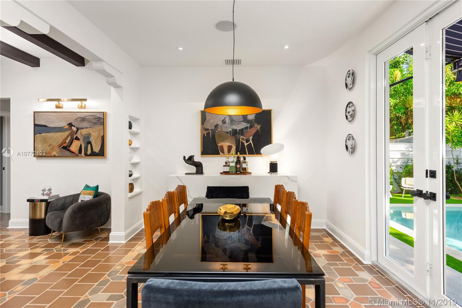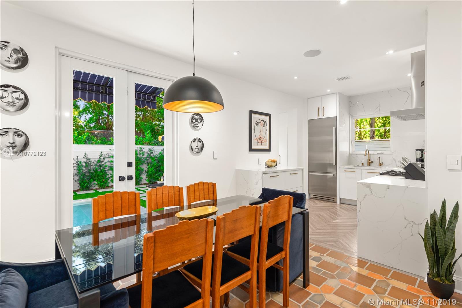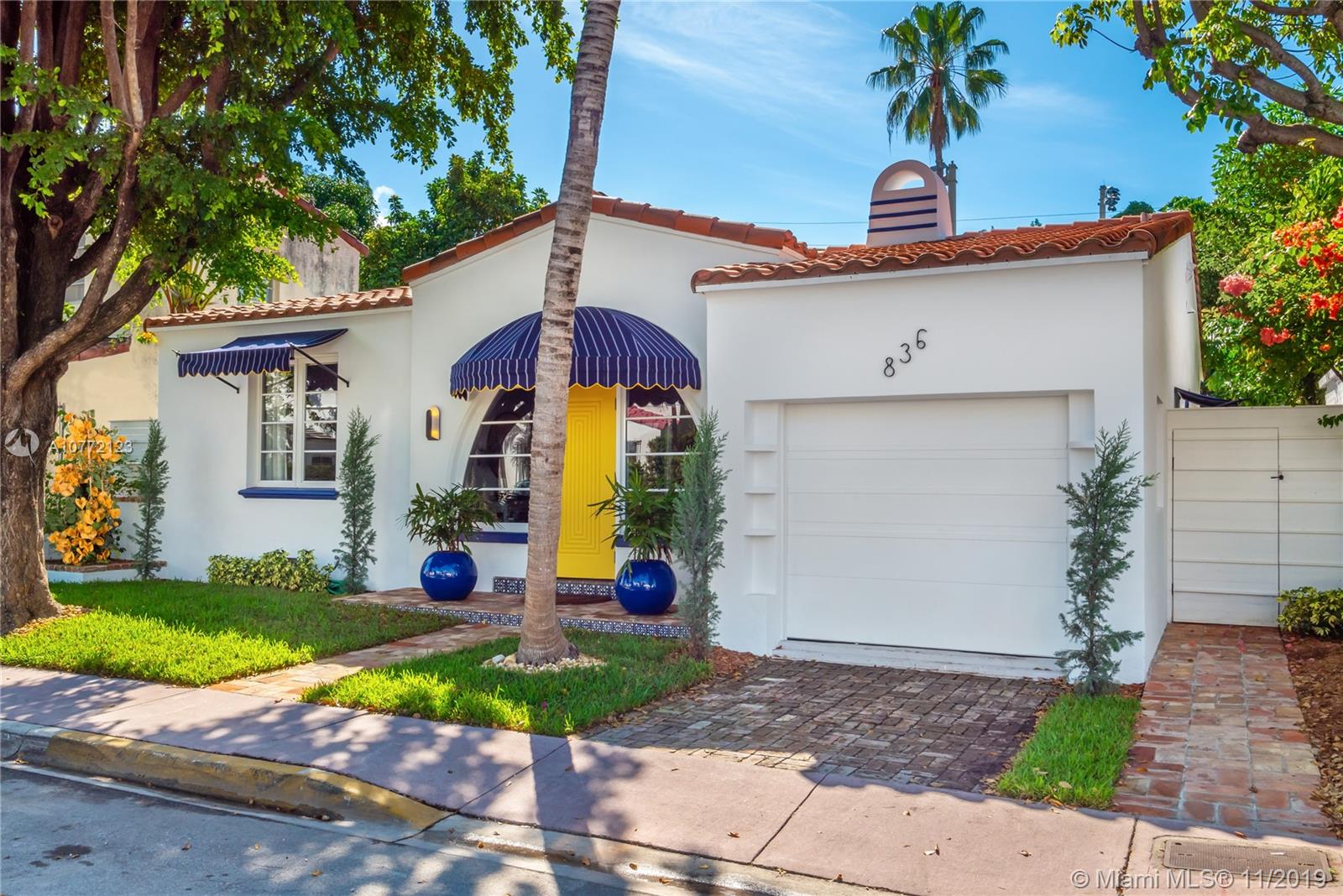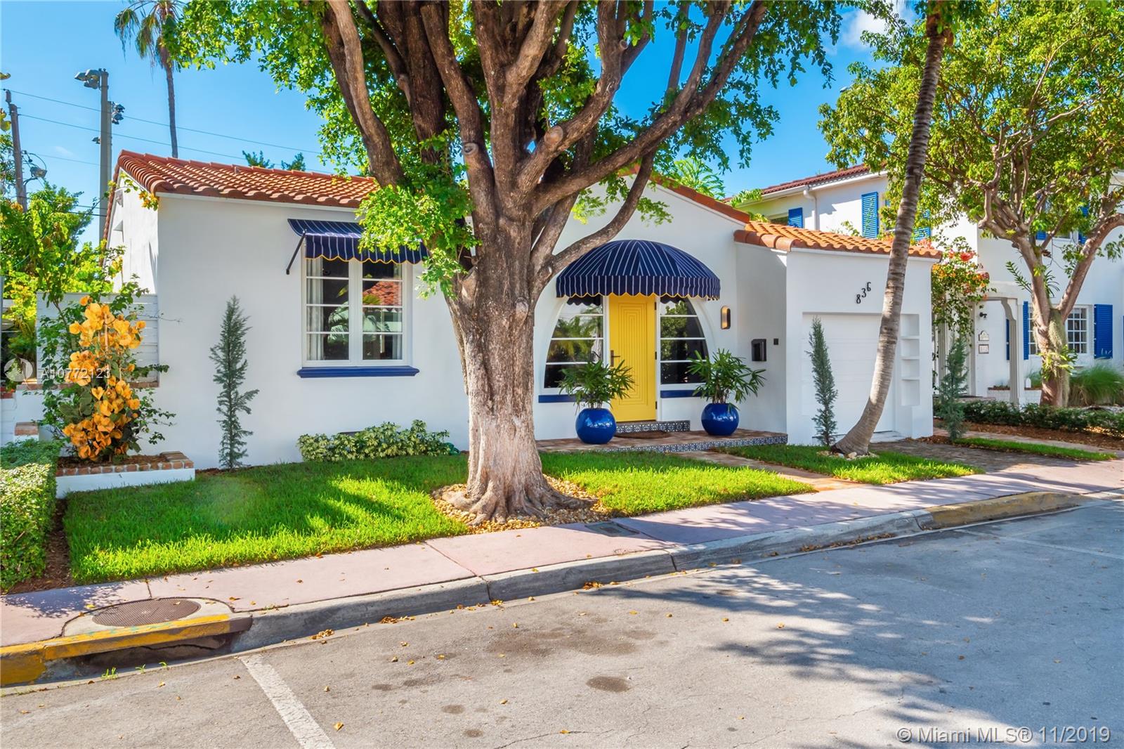 Med-Deco architecture in Miami Beach, Recently Featured in Elle Decor, 3 bed 2.5 bath home on the coveted Española Way, a quiet closed street, short walk to South Beach's hottest spots. Designed by Award-winning designer Alex Alonso. Extensive total renovation of all the interior and exterior spaces. The original tile floors, beamed ceiling, and Art Deco fireplace have been lovingly restored. It boasts a Bertazonni Italian Kitchen, Phillippe Starck and Porcelanosa bathrooms, custom Italian-style cabinetry and wardrobes throughout, wood herringbone floors, and a salinated modern pool that rivals Miami’s best boutique hotels. Meticulously sourced designer and custom furnishings and well curated artwork throughout .This luxurious chic home is being offered completely furnished and turn key.