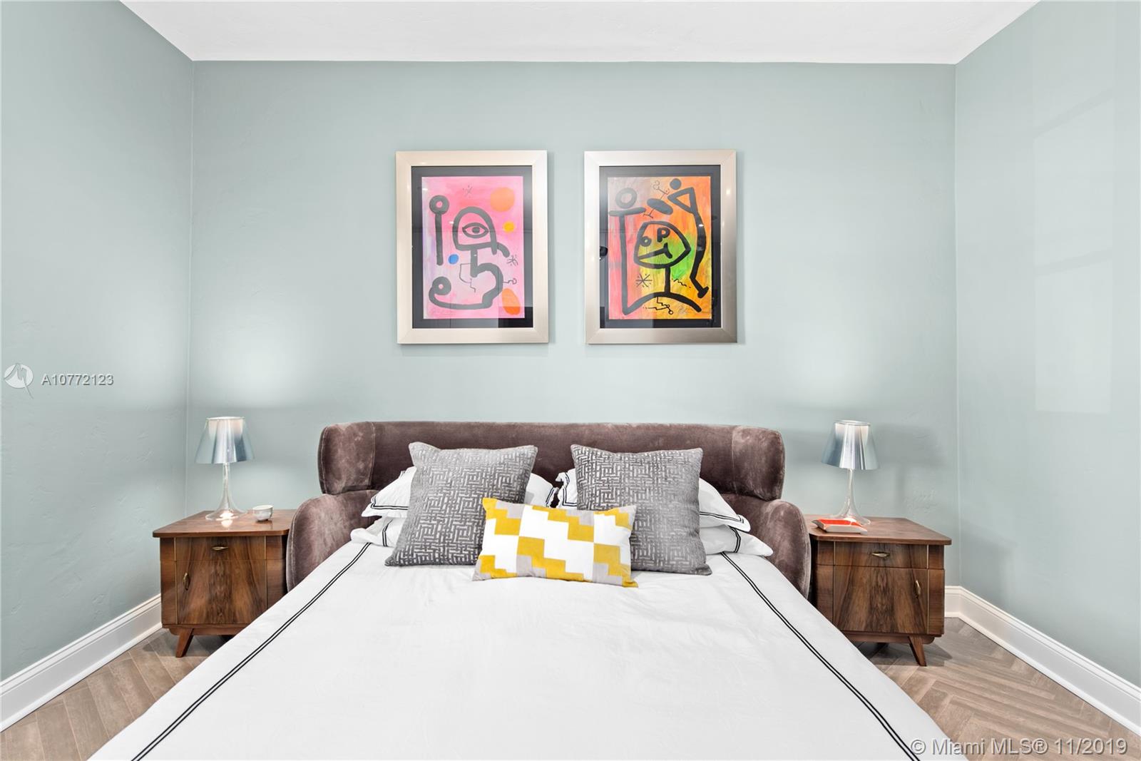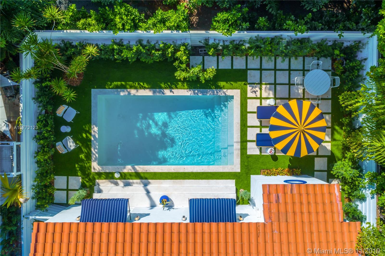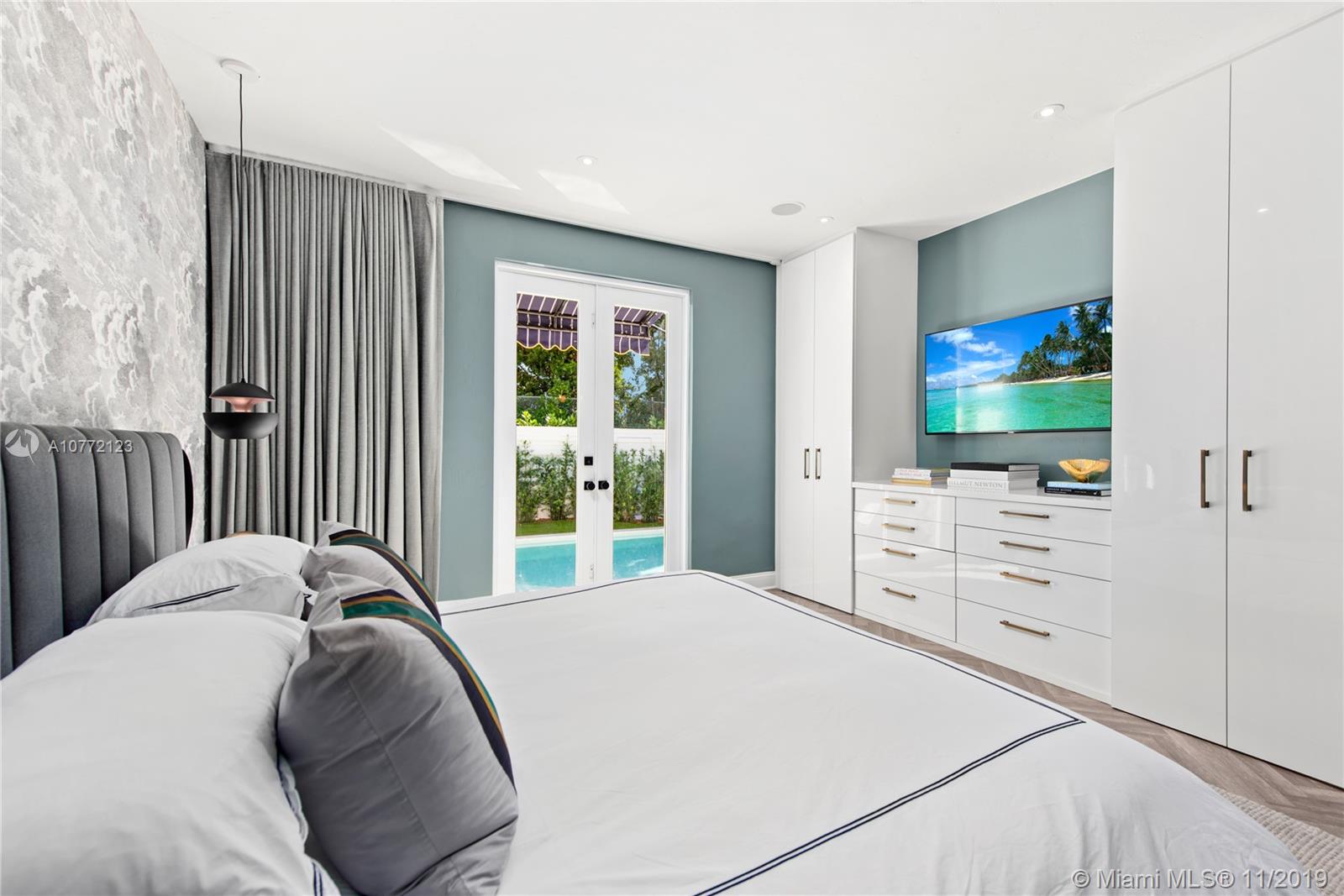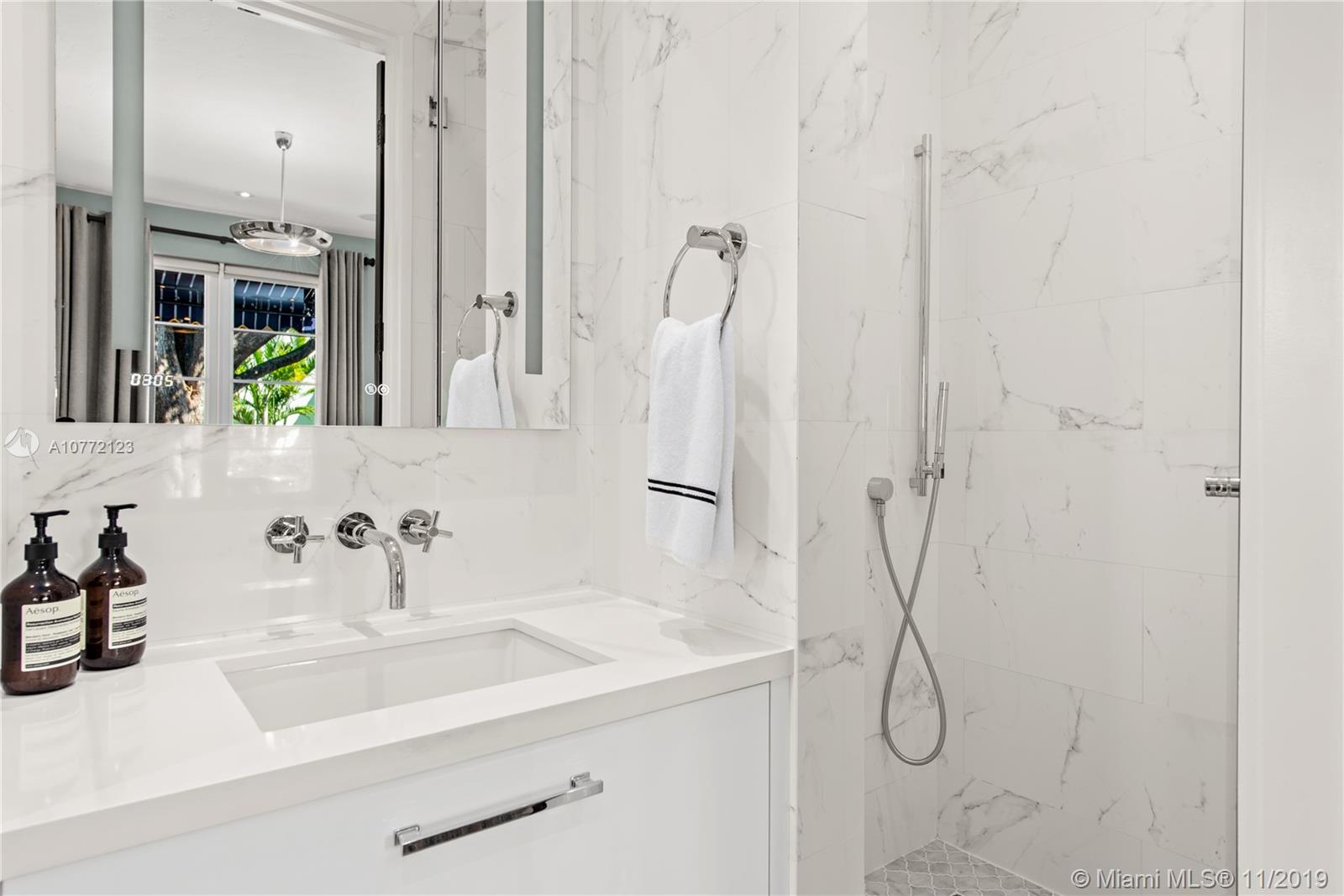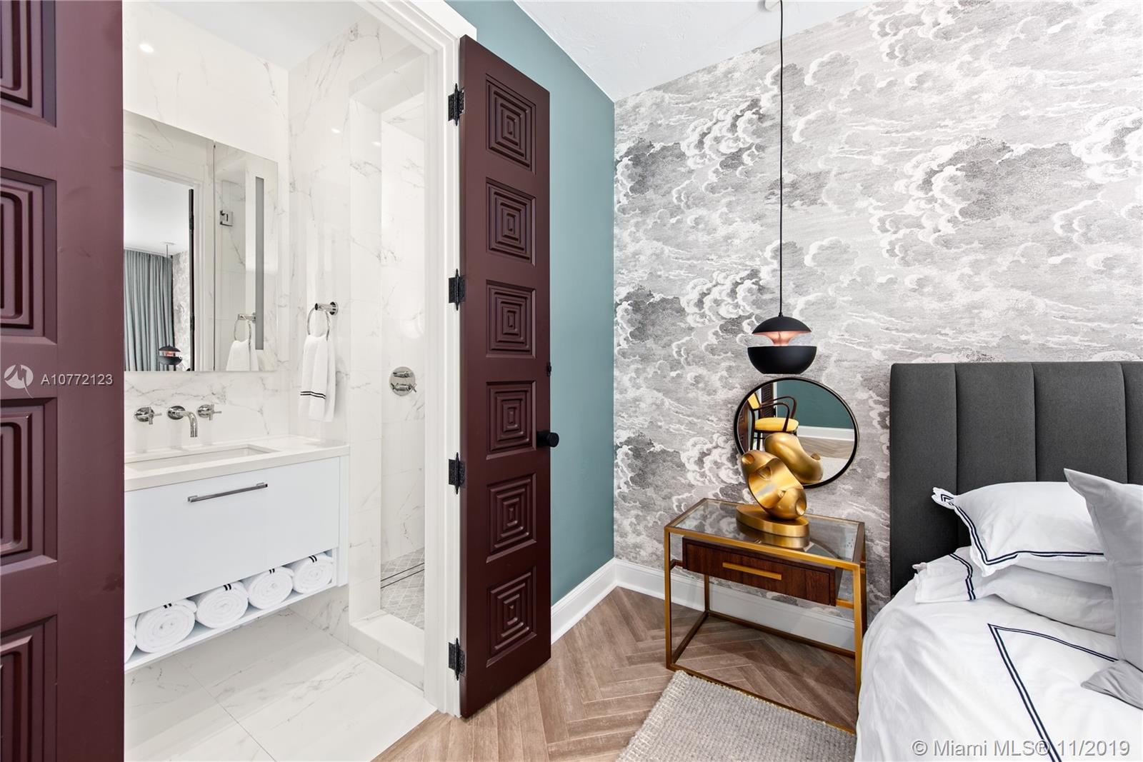 Med-Deco architecture in Miami Beach, Recently Featured in Elle Decor, 3 bed 2.5 bath home on the coveted Española Way, a quiet closed street, short walk to South Beach's hottest spots. Designed by Award-winning designer Alex Alonso. Extensive total renovation of all the interior and exterior spaces. The original tile floors, beamed ceiling, and Art Deco fireplace have been lovingly restored. It boasts a Bertazonni Italian Kitchen, Phillippe Starck and Porcelanosa bathrooms, custom Italian-style cabinetry and wardrobes throughout, wood herringbone floors, and a salinated modern pool that rivals Miami’s best boutique hotels. Meticulously sourced designer and custom furnishings and well curated artwork throughout .This luxurious chic home is being offered completely furnished and turn key.