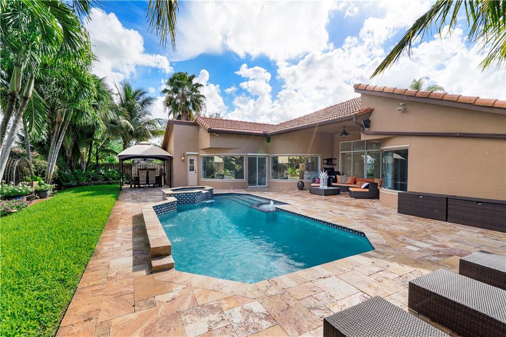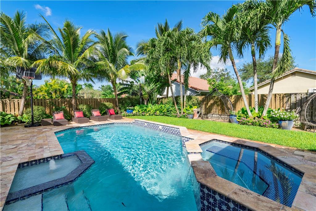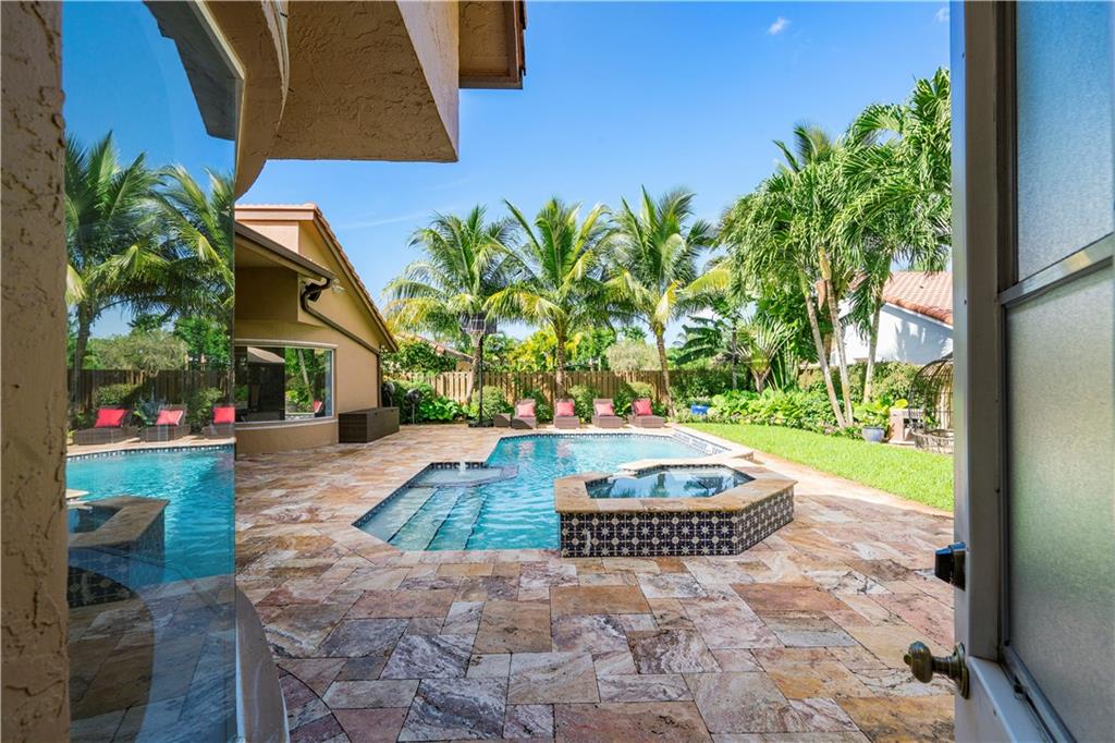 Fabulous North Springs home. Light, bright and well maintained. 4 bed 3 bath, spacious split plan layout, vaulted ceilings. Tastefully updated Kitchen, flooring, bathrooms, closets, interior lighting and chandeliers. 2 AC units. Hurricane Shutters. Professionally landscaped. Fenced in backyard with gorgeous expansive marble paved pool area, equipped with outdoor lighting and Bose sound system, an outdoor entertainers dream. Expanded paved circular driveway with ample parking. Lots of convenient extras such as centrally stationed smart security surveillance; indoor Jandy system for pool operation; 50 and 30 amp exterior outlets; storage shed. NO HOA. Close to shops, dining, Sawgrass Expway, and houses of worship. This is great Coral Springs living.