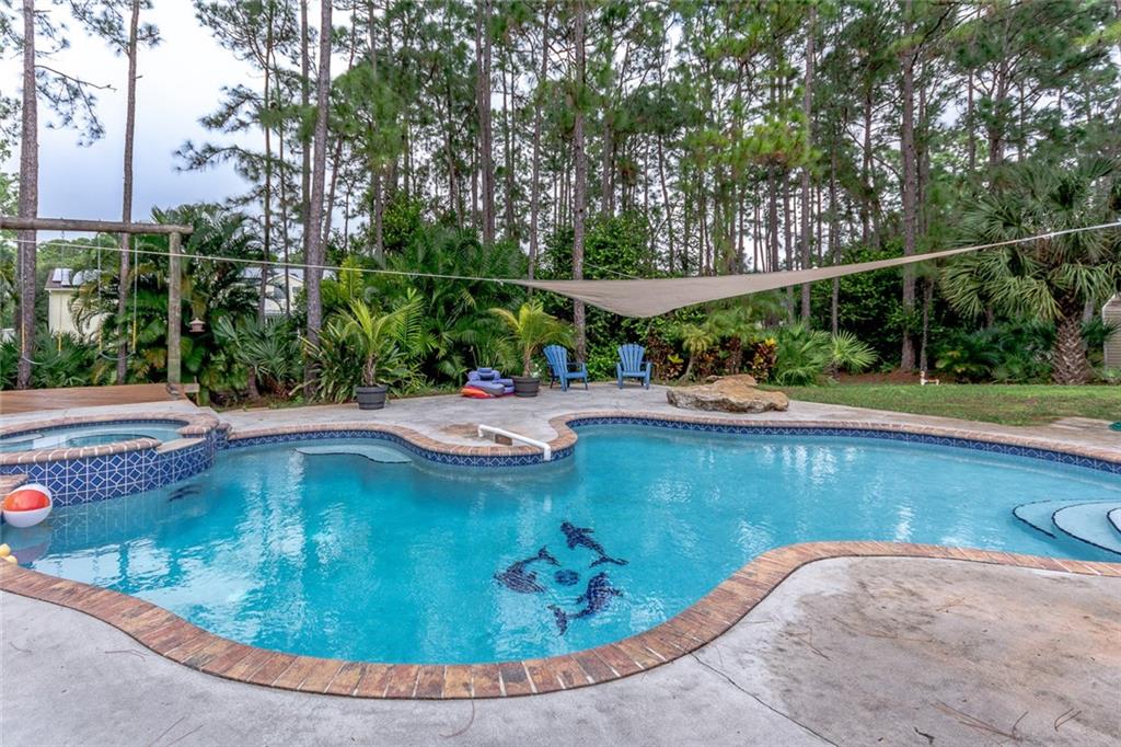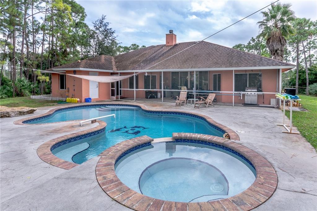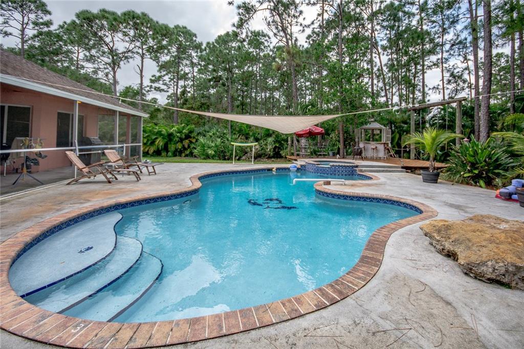 Room to roam on this secluded lot. Resort style backyard on this 1.25 Acre lot. Spacious custom built home. Completely fenced side and backyard with heated pool and spa. Pool and Spa heater is new. Exterior completely painted with updated landscaping and irrigation system. New water system, newer A/C, washer, and dryer. Gorgeous custom built-ins in office. Camera system in office with room to add extra camera's. Real wood burning fireplace in living room. Huge master suite with adjoining oversize master bath. Very open floor plan!!! Great home and lot for entertaining. Peaceful and quiet neighborhood.