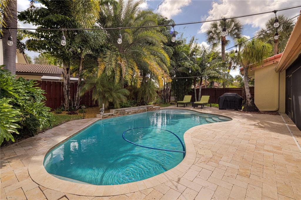 Beautiful 4 bedroom 2 1/2 bath single story remodeled home in desirable Paradise Palms on a large corner lot. Vaulted ceilings & skylights make this house feel open & bright. Spacious screened in patio allows additional living space, an immaculately maintained custom free form salt water pool, large deck & lawn, mature landscaping provides additional privacy to complete a backyard oasis. A double gate on the N. side of the house provides "gated" parking for your boat. Roof is less than 10 years old, new air conditioning unit, hurricane impact windows, 2 car garage & a circular driveway provides ample parking. Attic storage is easily accessible with pull down stairs in the garage. Volunteer HOA, no approval needed! A+ rated Boca Schools: Verde Elementary, Omni Middle, Spanish River High