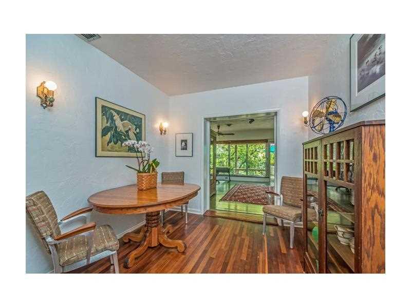 Fabulous Old Spanish gem with hardwood floors and charming archways throughout in quiet, upscale neighborhood. Very spacious living areas include front screened porch, separate formal liv rm with fireplace & open beamed ceilings, separate formal din rm, large family rm overlooking private gardens, galley kitchen with sep breakfast room, sep butler's pantry with half bath. Back garden has large seating deck and room for pool, many specimen (palms & tropical) plants, full garage.