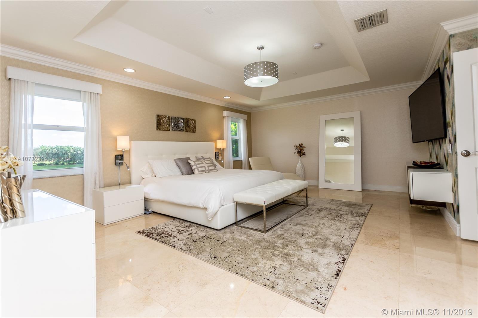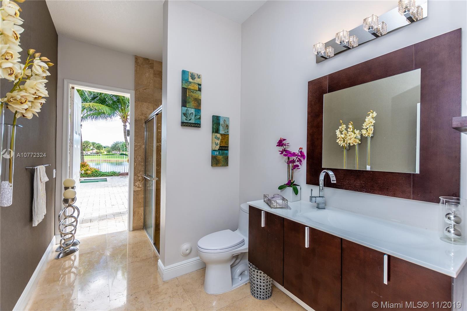 Impeccable home situated in the prestigious gated community of Savanna, in the exclusive COVE III. Exquisite details and the fine finishes are appointed throughout the house from its marble floors, modern glass and metal staircase, Italian modern open kitchen with breakfast area overlooking the tranquil lake, formal dining with an accent spaccato wall design and more to see!! This stunning home features a total of 5 bedrooms, plus an office, one situated in ground level, and 4 full baths tastefully renovated. Master bath with dual sink, separate tub and shower, private toilet. The new pool design and lush landscaping will give an elegance touch to the outdoor ambiance. A 3-Car garage and spacious driveway. Newer ACs. Alarm system & Cameras controlled by an app. A Truly Magnificent property
