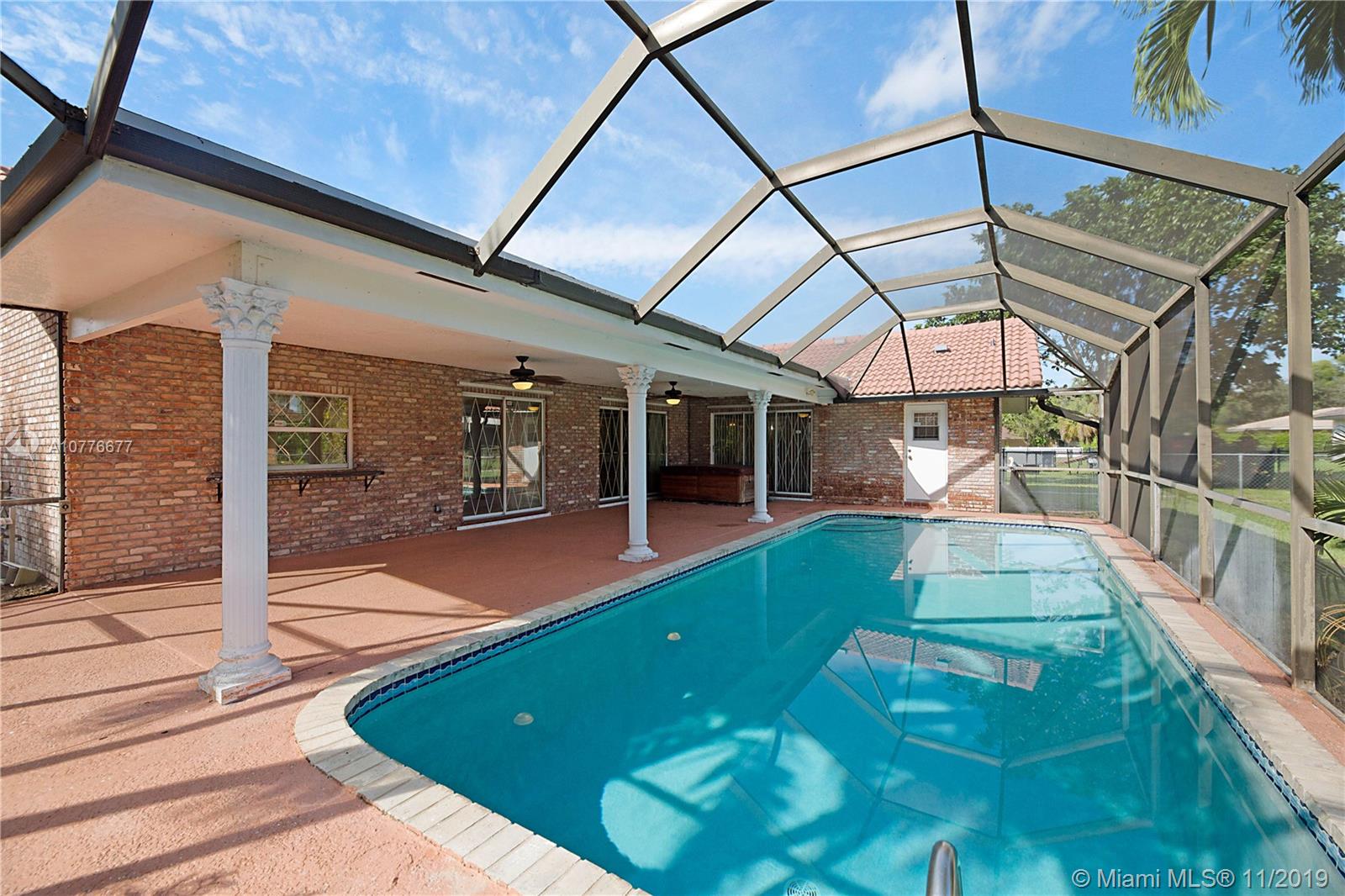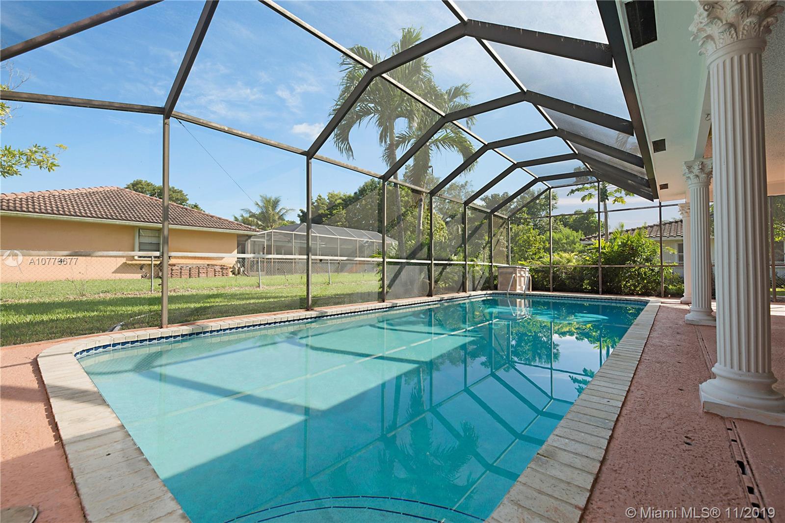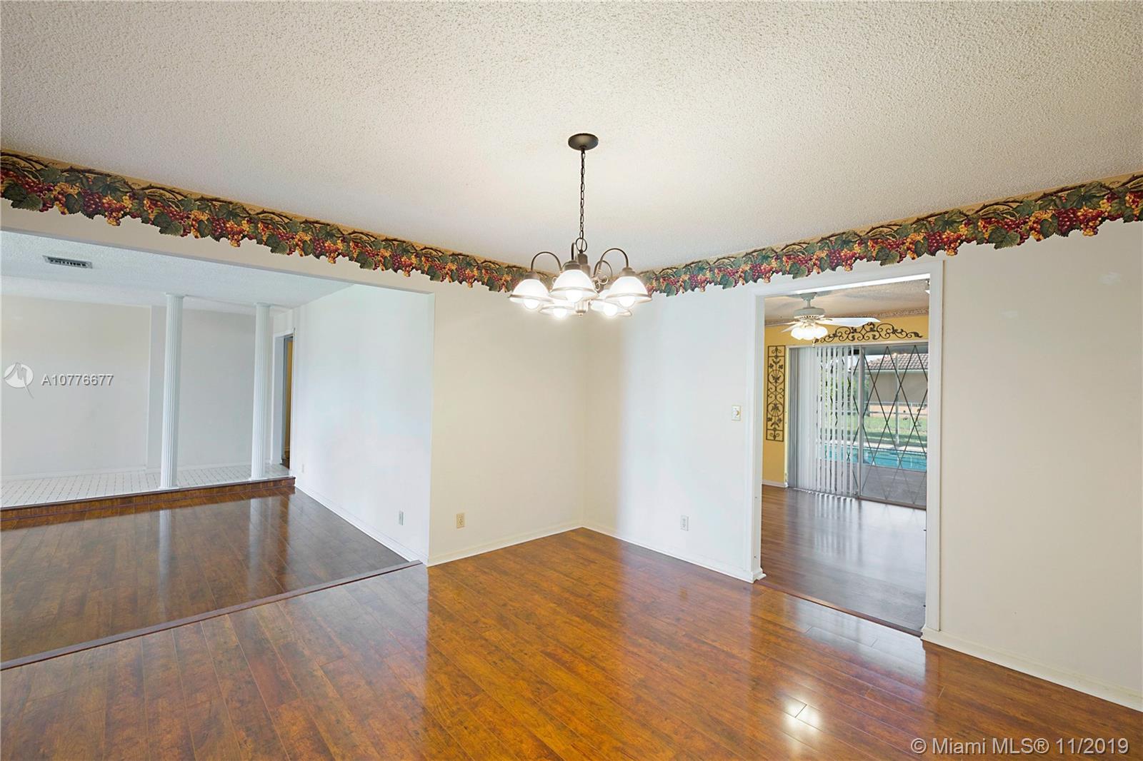 Beautiful brick home, located in the desired community of Coral Springs Country Club. This updated 4 bedroom 2 bath home is situated on a expansive 13,750 sqft lot w/ an attached 2 car garage & driveway that can fit 6+ cars. Formal living/dining & family room. Upgraded kitchen open to breakfast nook & family room. Wood laminate flooring throughout the entire home. Large indoor laundry room w/ utility sink. Fenced yard w/ multiple fruit trees (mango, papaya, avocado), perfect entertaining patio w/ brand new flat roof over looking the screened pool, plenty of yard space past the screened enclosure. A/C 5 years old, new tankless water heater, newer sprinkler and pool pump (2016), new garbage disposal, hurricane shutters, barrel tile roof only 15 years old. No HOA & more! Video tour available!