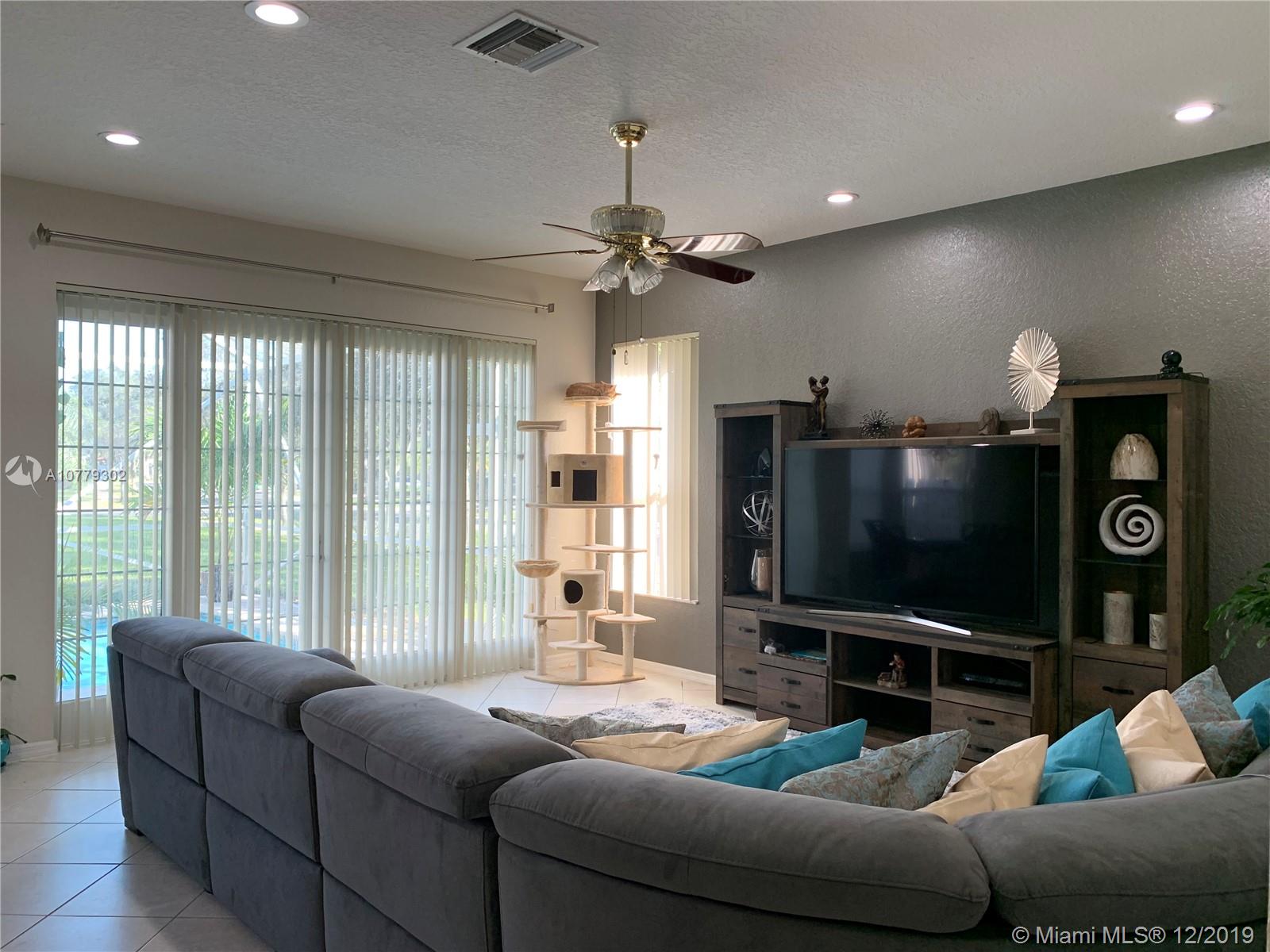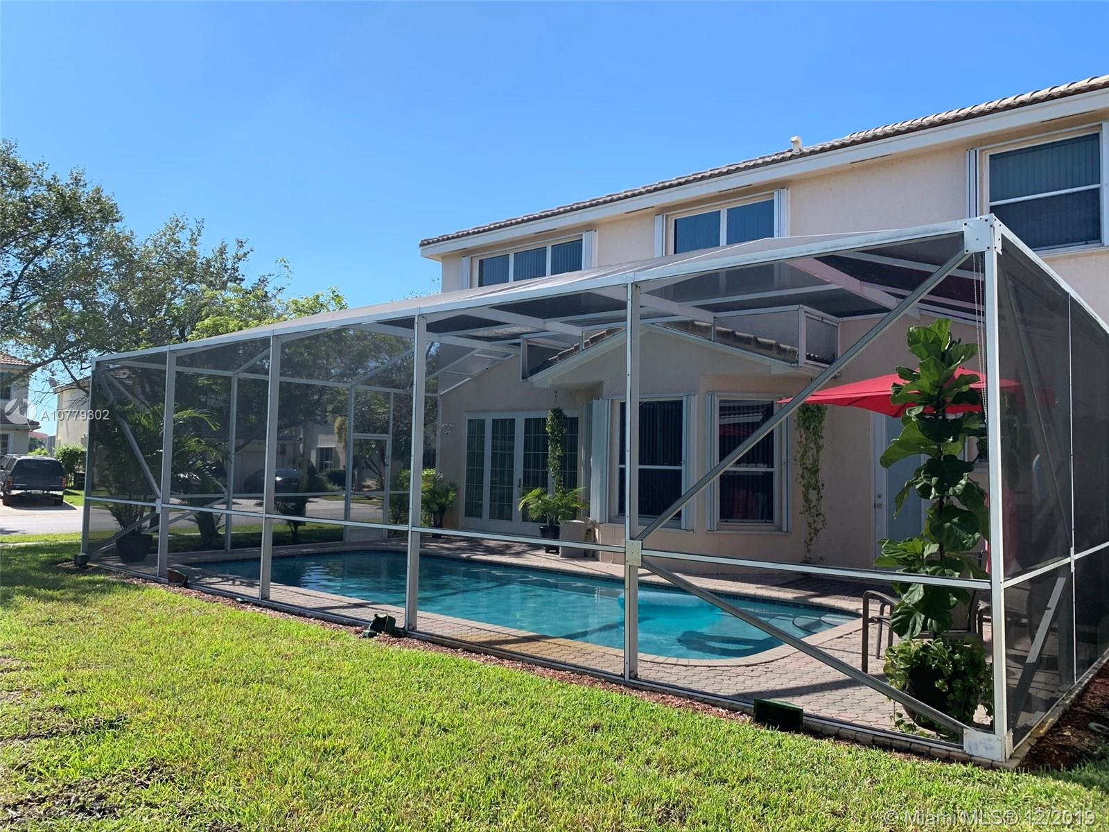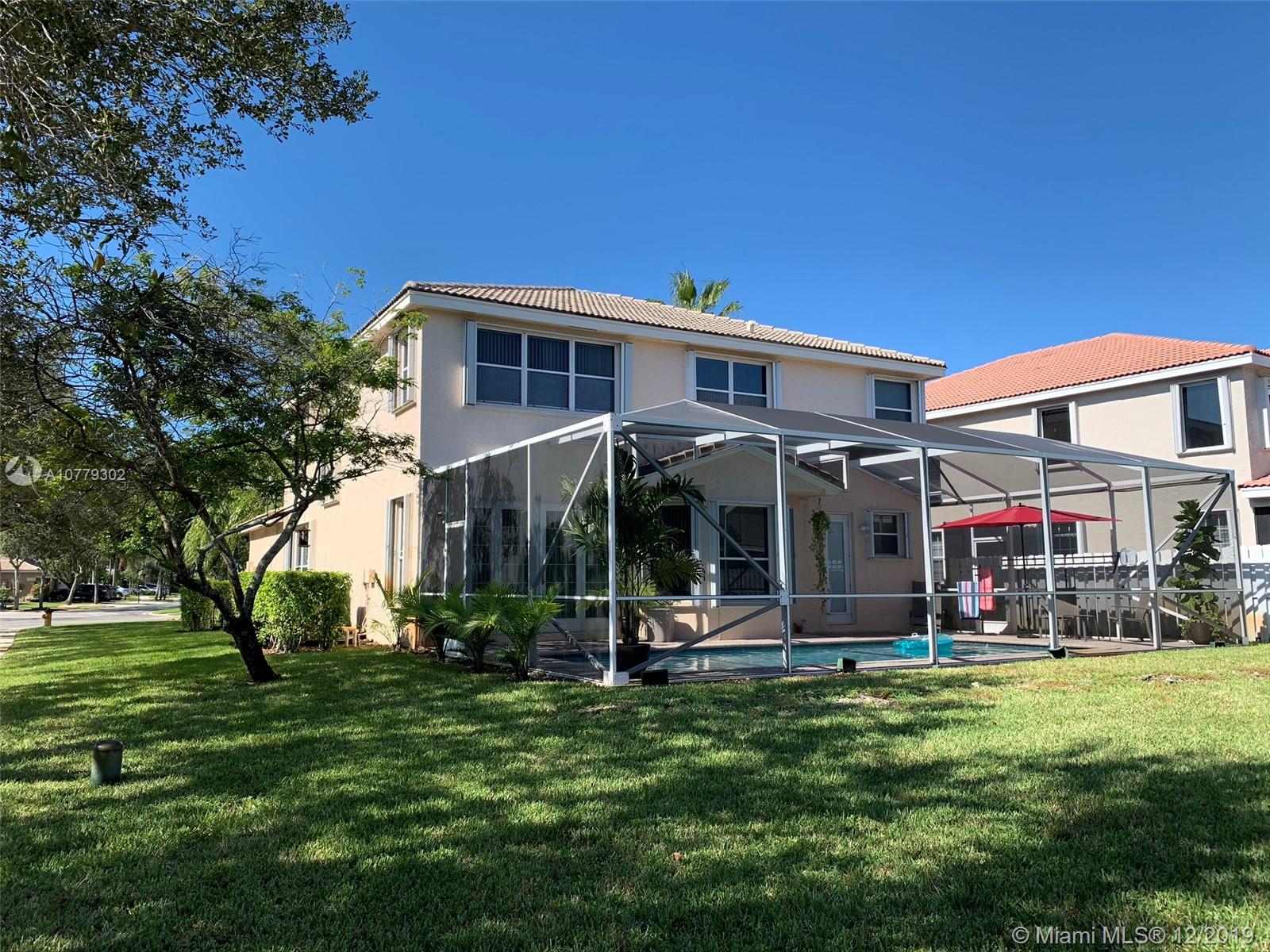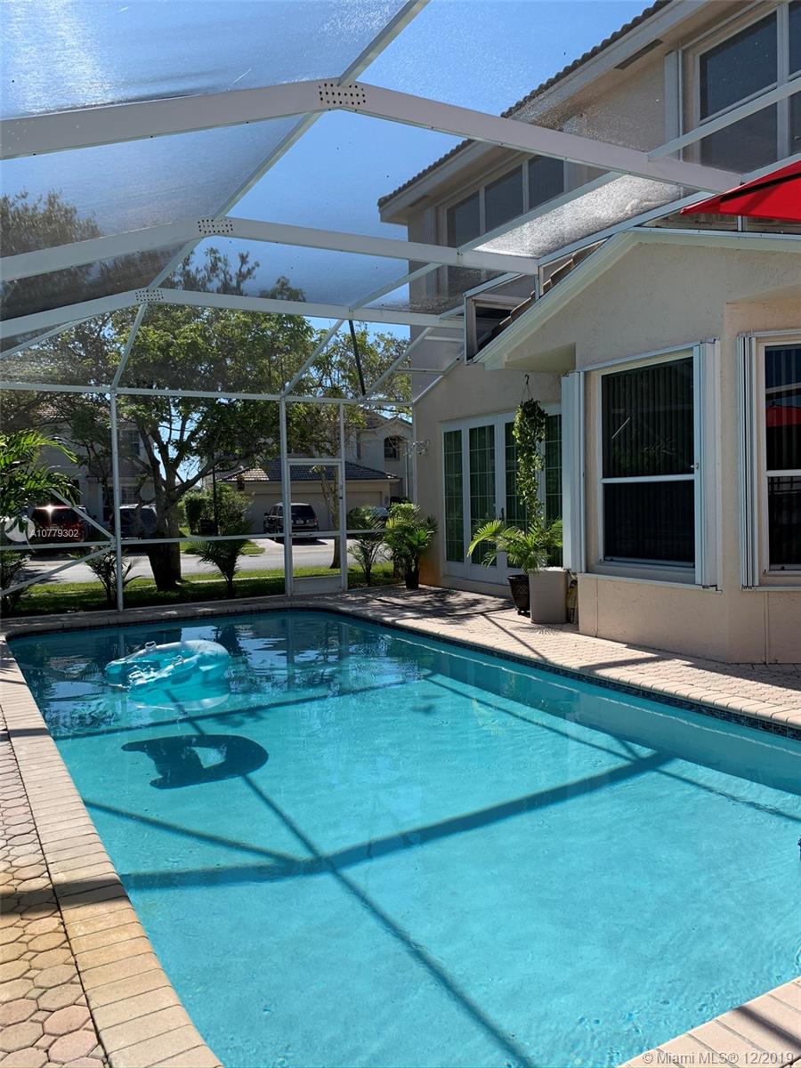 Large 5/4, office and bonus rooms. Corner 2 story home. Salt water pool and pool heater. 2 car garage, large driveway. Bentley model at desirable Silver Shores in west Miramar. Double doors main entry way, formal living and dining room, large family room, kitchen with new SS appliances and breakfast nook, office and one large bedroom, convenient cabana bath. Impact french doors and pool access door to screened in pool, accordion hurricane shutters throughout. Second floor is poured concrete and concrete w/ steel reinforced concrete walls. his and hers master bath and large walk-in closets, bonus room in master bedroom, 3 bedrooms and a large double sink full bath. Guarded community, 2 pools, club house, tennis and basketball courts, play ground. Lowest HOA in the area.