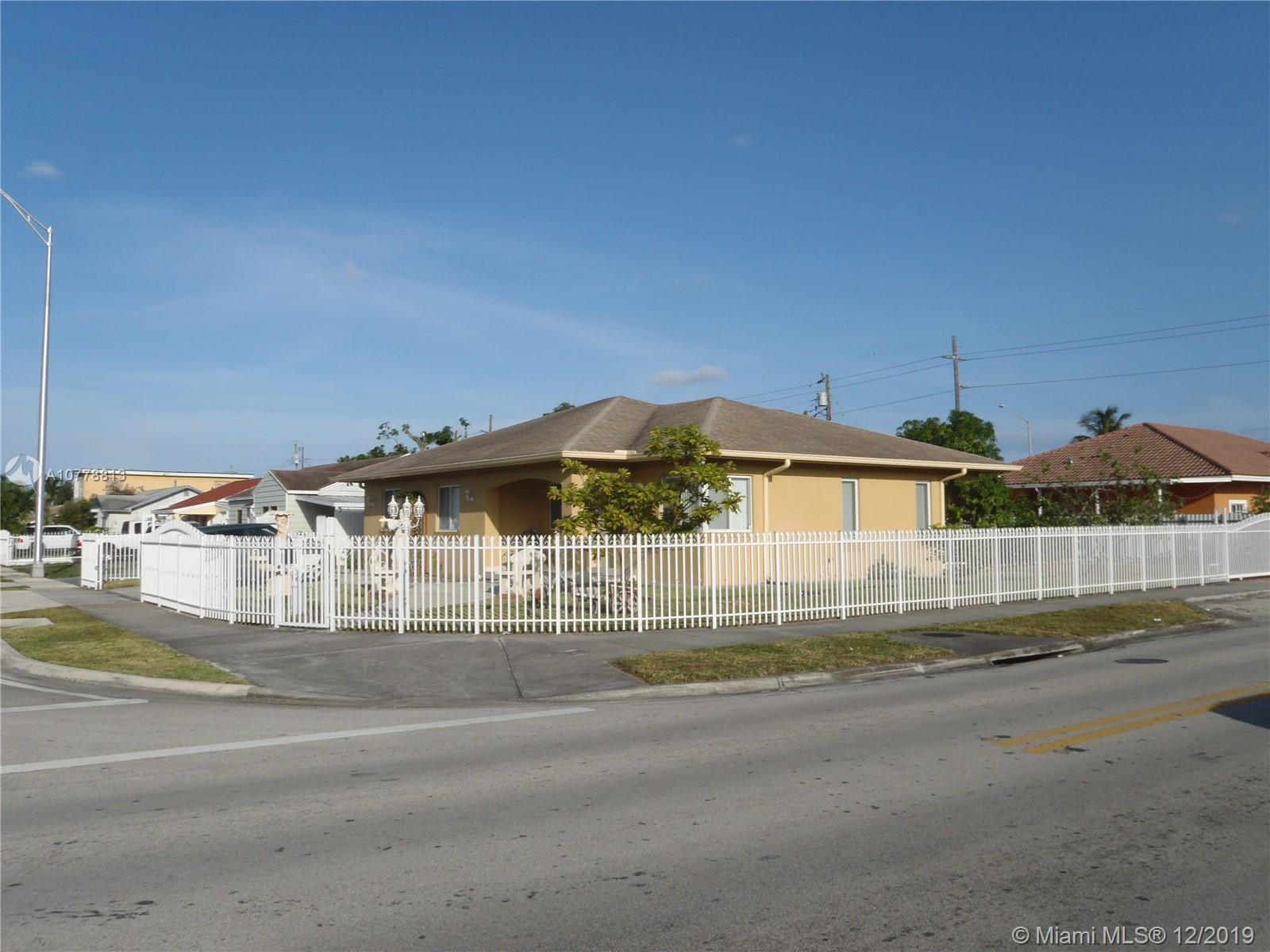 Corner lot home for sale in East Hialeah. The property has 3 bedrooms and 2 baths; a full master bedroom with walk-in closet. A kitchen with wood cabinetry, granite counter tops, and stainless steel appliances. Ceramic tile throughout, security system, smoke detectors, gate door opener, hurricane shutters panels, rain gutters, sprinklers system and much more. Driveway and paved backyard offer a room for a boat, a RV or parking for more than 10 cars. Patio has fruit trees. The house is impeccably maintained and centrally located; near from schools, shopping centers, public parks; has easy access to major highways and minutes away from Miami airport and Miami downtown.