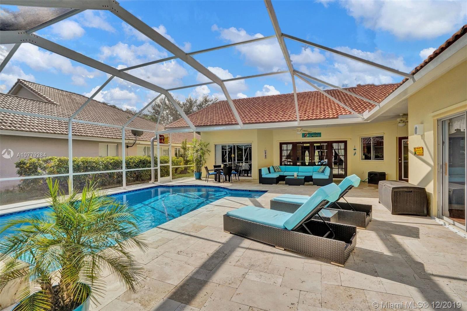 THIS IS A MUST SEE !! 3 bedrooms + den/office; Newly painted inside & outside; open-concept, split-bedroom bright & airy home w/24-hour guarded gate & low HOA fee. Loads of features & upgrades; brand new roof in 2019; Pariadise back yard w/ newly resurfaced, re-tiled & travertine-paved ; In-ground HEATED SALT POOL w/waterfall, e-efficient variable-spd pump; Newer lighting fixtures; 2nd bathroom completely remodeled; den/office w/ new wainscoting & crown molding; large master suite w/ 2 walk-in custom closets; full hurricane protection w/hurricane-rated garage door. Newer all stainless steel appliances in kitchen. Laundry w/ cabinets & sink / washer & dryer. 2-stage AC for quiet unit. Sprinklers draw water from the lake, Manicured landscaping; Come see this wonderful home! IT WONT LAST!!