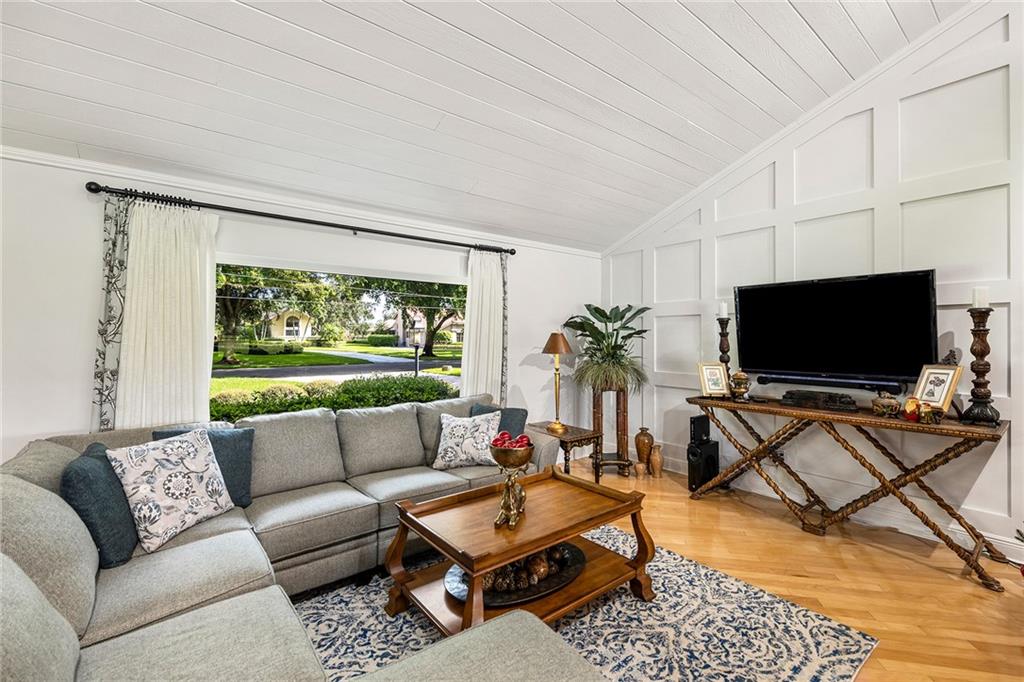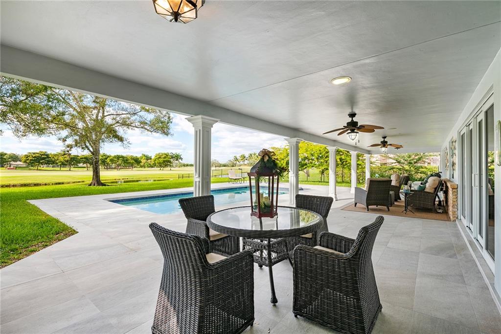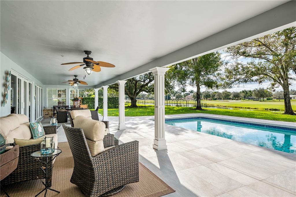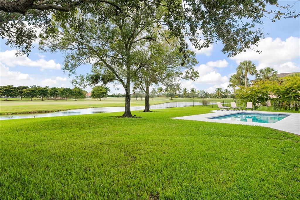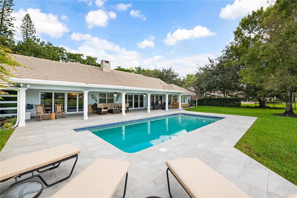 Live on the golf course in beautiful and private Lago Mar Country Club on over 1/2 acre of land. This custom-built pool home has 4 bedrooms plus an office and 3 bath. Home has a complete set of impact windows for protection and quiet enjoyment. Home has a spectacular gourmet kitchen with thermador stainless steel professional appliances. Quartz counter tops and wood floors throughout brick accents and wood-burning fire-place add to this warm and cozy atmosphere. A Jenn-air wine refrigerator is convenient for easy entertaining. A relaxing pool and patio overlooking the golf course and canal makes for a fabulous resort feeling. The clubhouse is steps away for easy golf, tennis, pool, restaurant and bar and entertaining.