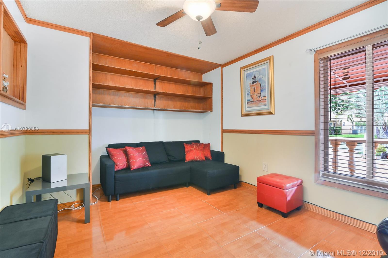 Enjoy living in this move-in ready 4 beds, 2 baths home on a quiet street. The layout is very comfortable for entertaining, featuring a spacious eat-in kitchen, leading thru french doors to the over-sized screened patio and an all-wood fenced back yard for privacy with Bohio hut and shed for storage. There is plenty of room to play! Open living and dining areas with vaulted ceilings. Master bedroom on a split plan. Impact windows. Includes security cameras and Ring Wi-Fi smart video doorbell. Circular driveway, irrigation system, fruit trees... this is a must see! Quick access to Red Road & highways, midway between Miami Lakes and Miramar. Low HOA $140 per year.