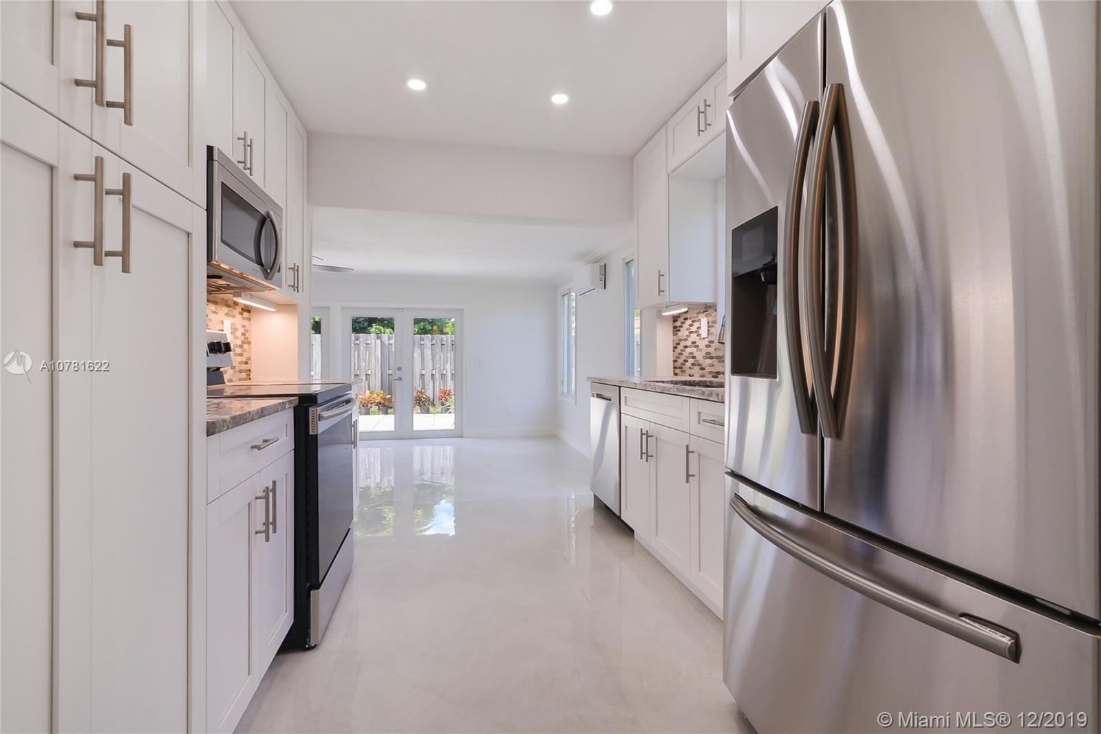 Beautifully remodeled 3 bedroom 2 bathroom single family home in Fort Lauderdale. No expense was spared! Brand new kitchen with stainless steel appliances, modern backsplash tile, brand new bathrooms with stone wall accent, spacious laundry room and an open concept living area. Enjoy floor to ceiling windows allowing for lots of natural light to flow through this beautiful home. Living area features a working fireplace, exquisite tile flooring and french doors that lead out to a welcoming green space. Home has new impact windows and doors. Brand new roof too. Ready to move in ! Located minutes from the beach and shopping.